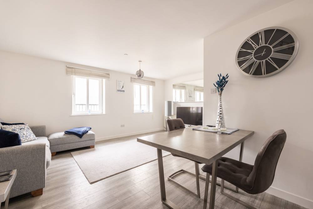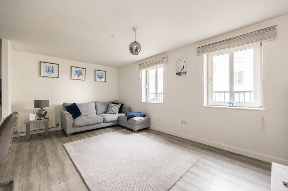 In true move in condition, the accommodation which can be accessed via the secure communal stairs or lift, briefly comprises; welcoming entrance hallway with storage, airy lounge/dining room with twin windows allowing plenty of natural light to flood the room, open plan fitted kitchen with a range of sleek white wall and base units with co-ordinated worktops and integrated appliances, principal bedroom with a built in wardrobe and full length doors with Juliet balcony offering a pleasant outlook over the communal garden, bedroom two which would make an ideal home office, study or dressing room, and a contemporary bathroom with a white suite, and shower over the bath. The property further benefits from gas central heating and double glazing.