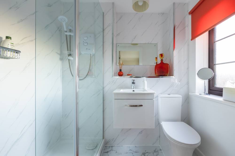 The front door opens into a generous dining hallway, providing a welcoming first impression and offering two large and highly practical storage cupboards. The bright twin-windowed reception room enjoys a pleasant southerly aspect to the front and features an attractive fireplace housing an electric fire, creating an ideal space for both relaxing and entertaining. Adjoining this is a designated dining room, which benefits from direct access to a private south-facing balcony, offering an ideal setting for formal dining or relaxed entertaining with outdoor space. The breakfasting kitchen has been refitted in recent years and is well equipped with a good range of modern wall and base units, integrated double oven, gas hob, dishwasher, washer/dryer and fridge/freezer, along with a wall-mounted boiler. The principal bedroom is a spacious twin-windowed room to the front, benefitting from built-in wardrobes and a luxurious en-suite shower room with white suite, as well as a large storage cupboard. A second generously sized double bedroom, also with twin windows to the front, features built-in wardrobes and its own en-suite shower room. Completing the accommodation is a guest cloakroom/WC, with scope for conversion to a shower room if desired. The property further benefits from gas central heating and full double glazing, with UPVC windows to the front and timber-framed windows to the rear and an entry phone system.