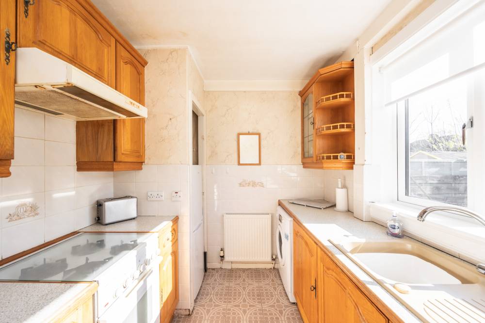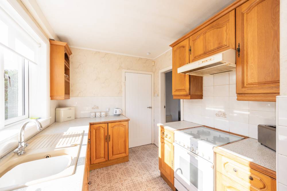 Requiring some modernisation throughout, this well-proportioned home boasts a fantastic layout, offering both space and functionality. The entrance hallway leads to a front-facing reception room, while the fitted kitchen at the rear enjoys pleasant garden views. A rear porch provides additional storage and plumbing for a washing machine. Upstairs, the property features two well-sized front-facing double bedrooms, both with built-in storage, along with a generous rear-facing double bedroom, also benefiting from storage and easy-care flooring. The shower room is fitted with a white two-piece suite and a separate shower cubicle.