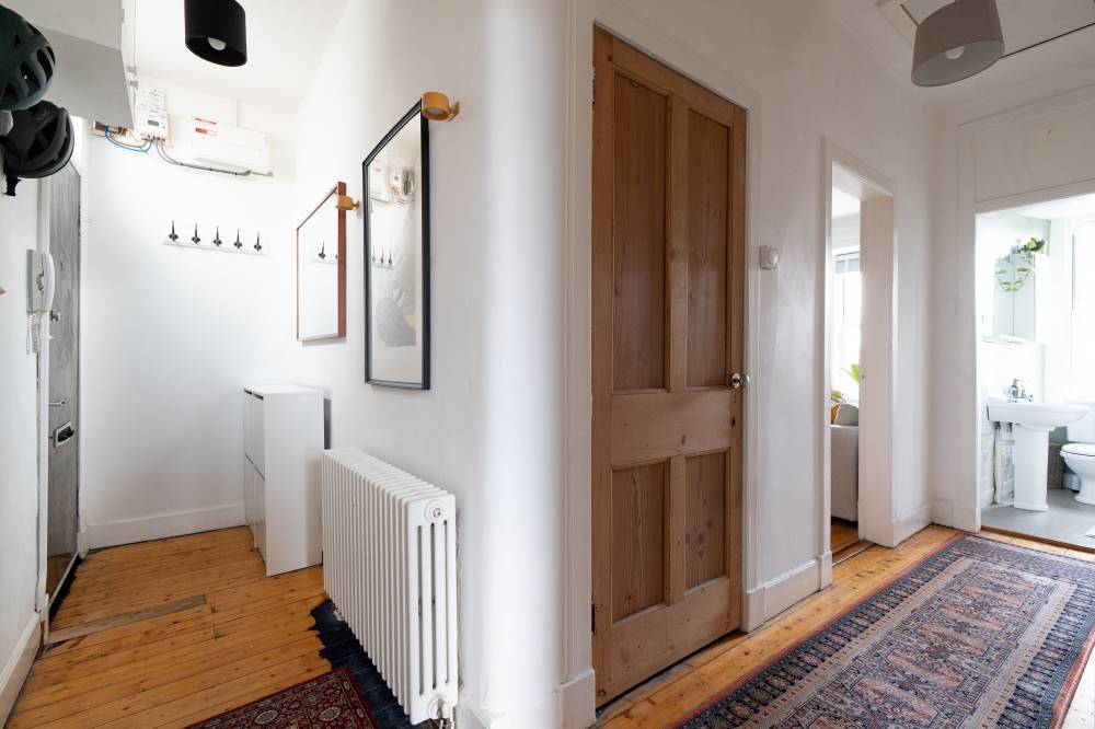 The accommodation in brief comprises; secure entry system, welcoming entrance hallway with useful storage and original wooden floors running through most rooms, light and airy twin windowed reception/dining room with Edinburgh press, internal fitted kitchen with appliances, two well proportioned double bedrooms and contemporary bathroom with three-piece suite and shower over bath. Further benefits include gas central heating, double glazing and a partially floored attic with a Ramsay style ladder.