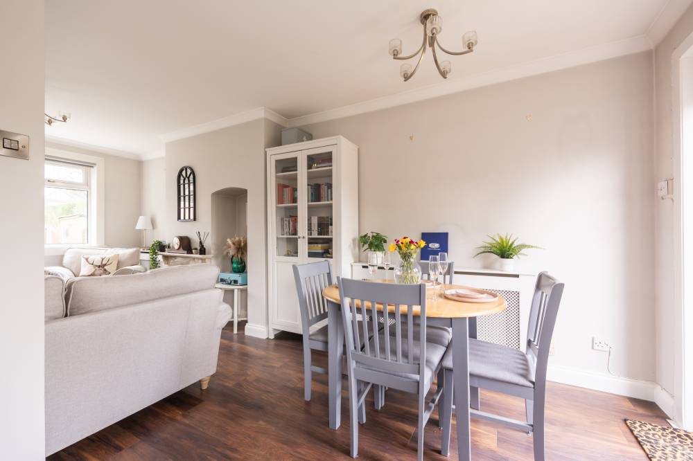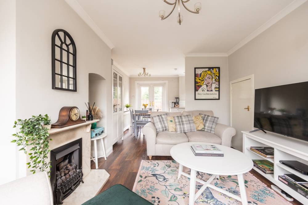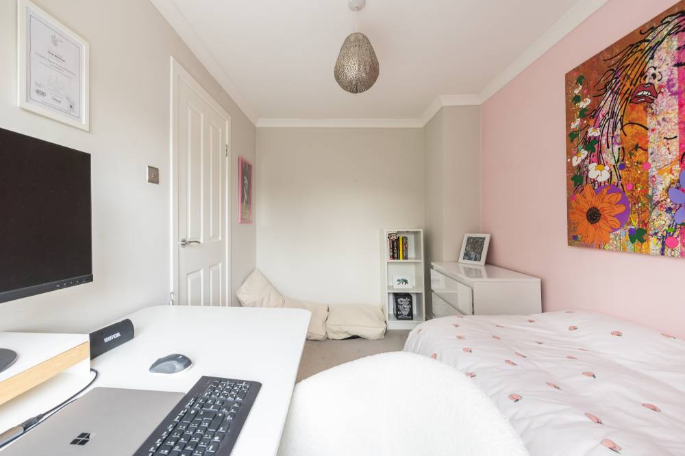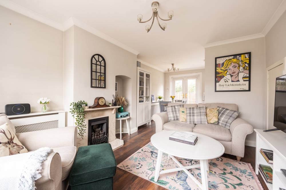 Externally, the enclosed rear garden includes a patio and lawn, while ample on-street parking is available along with a separate designated residents’ parking area.