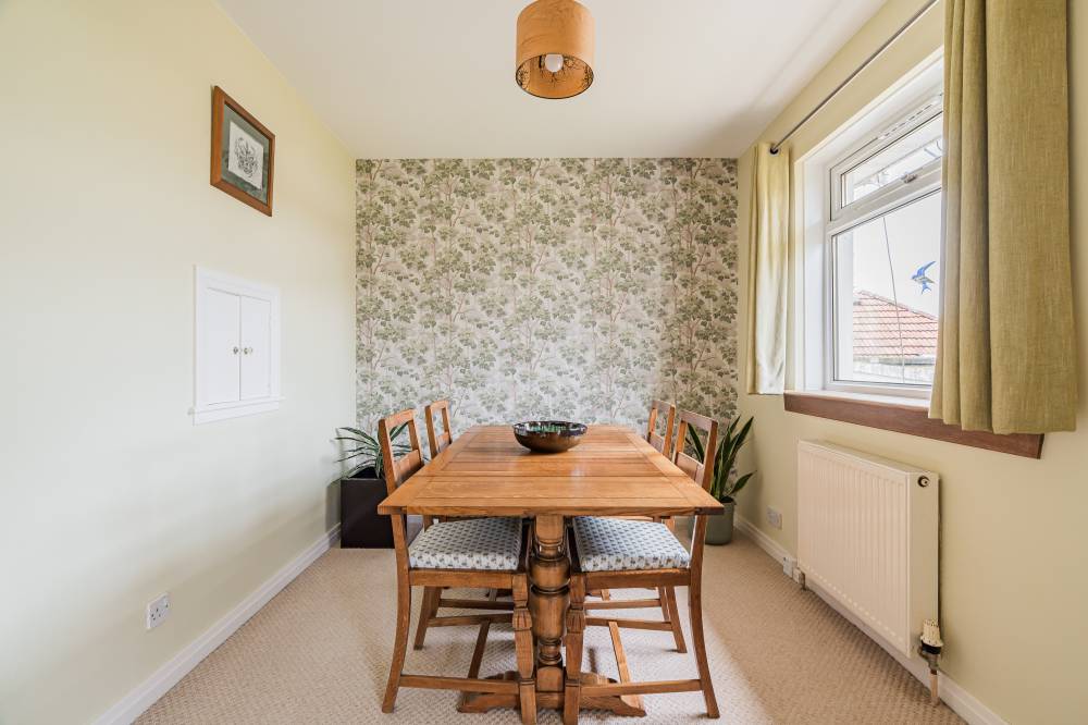 The accommodation is entered via a welcoming hallway, which offers useful under stair storage and provides access to the main living areas and staircase to the upper floor. To the rear of the property is a bright and spacious reception room, featuring a large window overlooking the rear garden, a gas fireplace and carpeted flooring. This space flows naturally into a defined dining area, also enjoying a rear-facing outlook, making it ideal for both everyday living and entertaining. The fitted kitchen is well laid out and comprises a range of wall and base units with tiling to splash areas. Integrated appliances include an oven, hob and dishwasher, and a side door provides direct access to the garden and driveway. Also on the ground floor is a generous double bedroom positioned to the front of the property, which benefits from built-in wardrobes and ample floor space. The bathroom is fitted with a three-piece suite, incorporating vanity storage and a shower over the bath. On the upper floor there are two further well-proportioned double bedrooms, both featuring built-in storage and carpeted flooring, offering flexible accommodation suitable for family living, guests or home working.