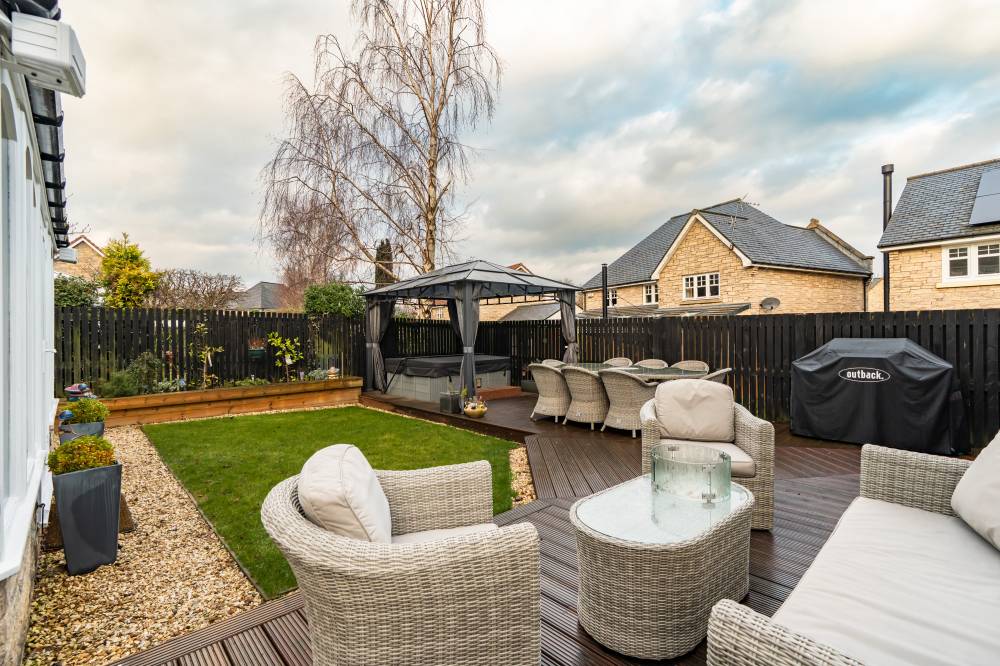 A real feature of this property is the superb, beautifully maintained garden to the rear. The landscaped garden is easily maintained with areas of decking and lawn, creating the ideal environment for children to play and to enjoy outside dining/relaxing. To the front and side lies well maintained garden grounds together with a driveway providing off-street parking for multiple vehicles leading to the double garage with electric doors.