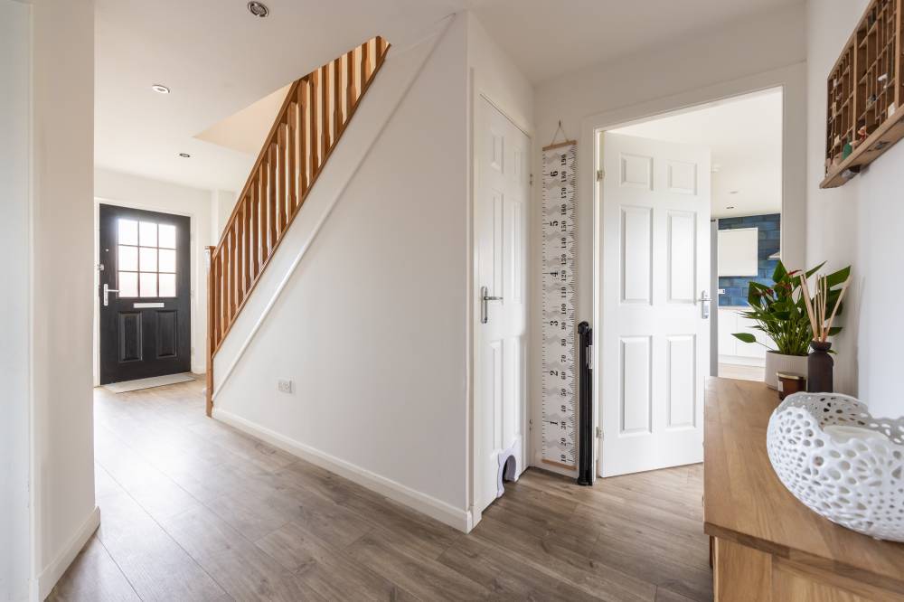 To the rear of the property is a generous fully enclosed garden offering the perfect setting for children or pets to play and enjoying a sunny, southerly aspect. There are lawn and patio areas, ideal for barbeques and al fresco dining. A gated side return gives external access to the front of the property to one side, with useful storage space to the other side. A front garden with lawn sets the house back from the street with a large monoblock driveway leading to the integral double garage, which has up and over doors, power and light and also houses the boiler and solar panel invertor. This generous space offers scope for conversion to further living accommodation if desired, or provides the ideal space for workshop/hobby space or a home gym.