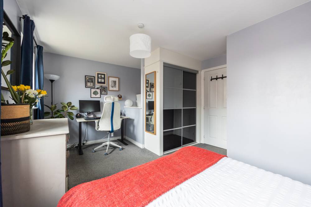To the rear, there is an enclosed well maintained private garden mainly laid to lawn with an area of patio. There is a further section of garden ground to the front and residents parking can be found to the rear. A factoring fee is made payable to First Port Scotland for the upkeep of the communal areas which is approximately £10 per month.