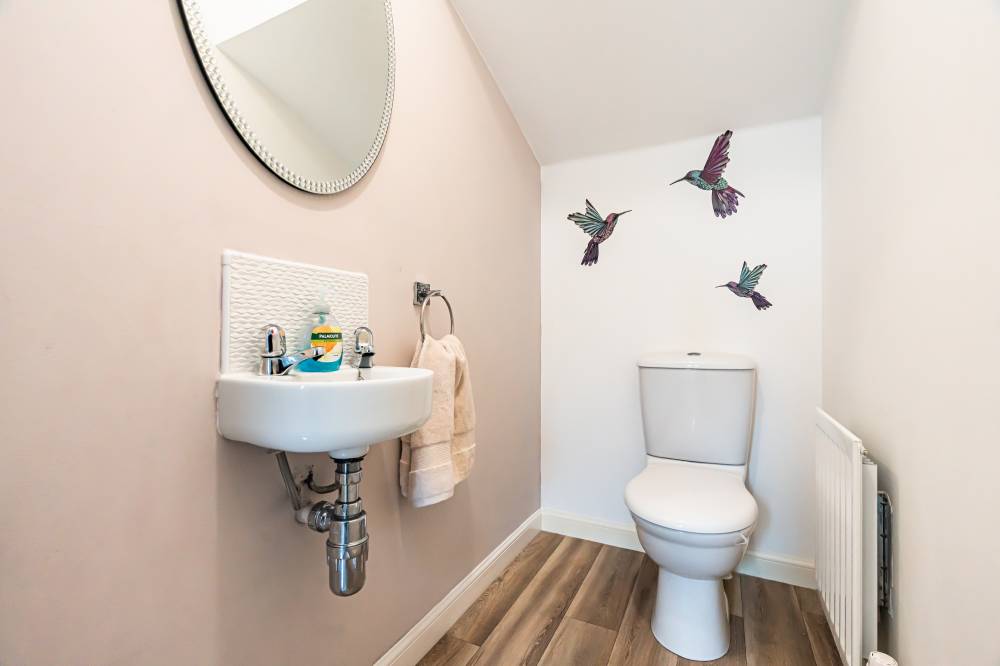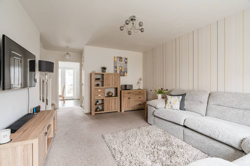Offered to the market in move-in condition, this lovely home offers excellent family living, enhanced with a light and stylish interior throughout. Undoubtedly appealing to a wide variety of buyers, this fine home comprises; entrance vestibule with useful two piece WC apartment off. There is a well presented and spacious reception room to the front with open plan staircase leading to the upper floor with cleverly utilised under-stair storage. A stylish dining kitchen is located to the rear with French doors leading to the rear garden. The kitchen itself is fitted with a range of modern wall and base units with built-in hob/oven/hood. A great addition to this home is the handy utility room with further storage units and houses the washing machine. Upstairs leads to the three good sized double bedrooms, with two of the rooms benefiting from built-in wardrobes. Lastly the family bathroom comprises of a 4-piece modern white suite including bath, WC, wash hand basin and shower enclosure with mains shower. In addition, there is a partially floored attic with Ramsay ladder access, providing excellent additional storage provisions and further benefits include gas central heating with combi boiler and double glazing.