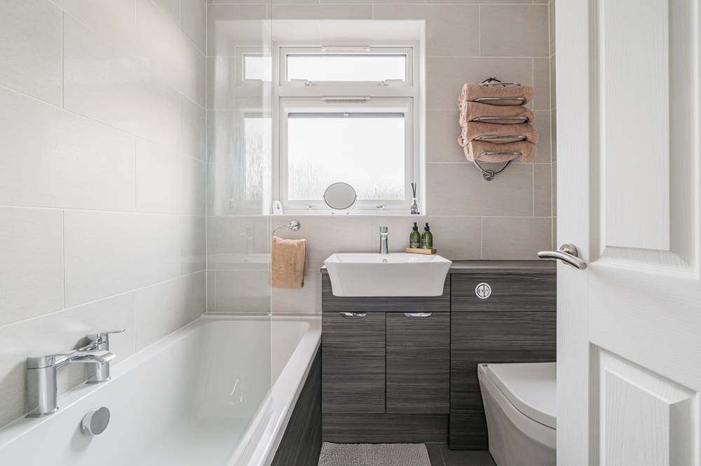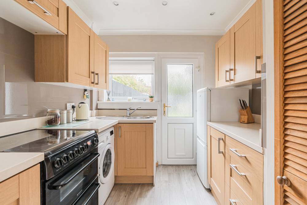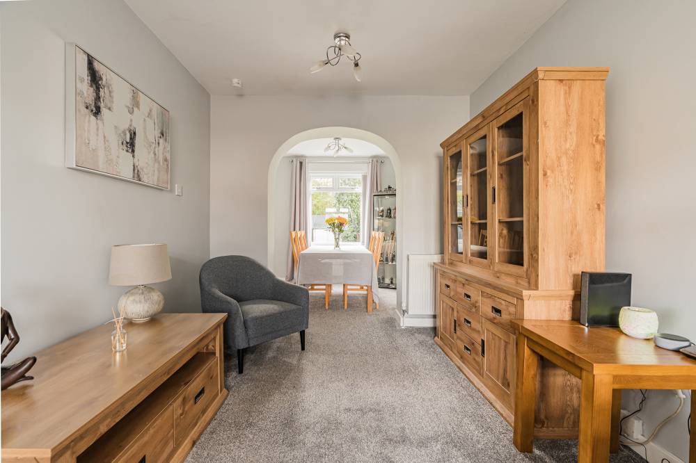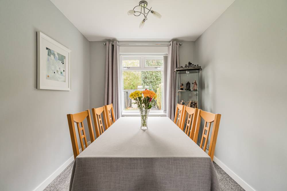 The property briefly comprises: entrance hallway with stair to the upper level and built-in storage cupboard, generously proportioned reception room with carpeted floor and fresh contemporary décor, open plan to a versatile dining space which enjoys a bright south facing aspect over the rear garden, attractive and well equipped kitchen which has been fitted with a variety of modern base and wall mounted units, contrasting worktops and splashback, spacious principal bedroom with twin windows and fitted wardrobes, second good sized double bedroom, and stylish family bathroom with tiling to walls, counter top sink, WC, and bath with splash screen and shower.
