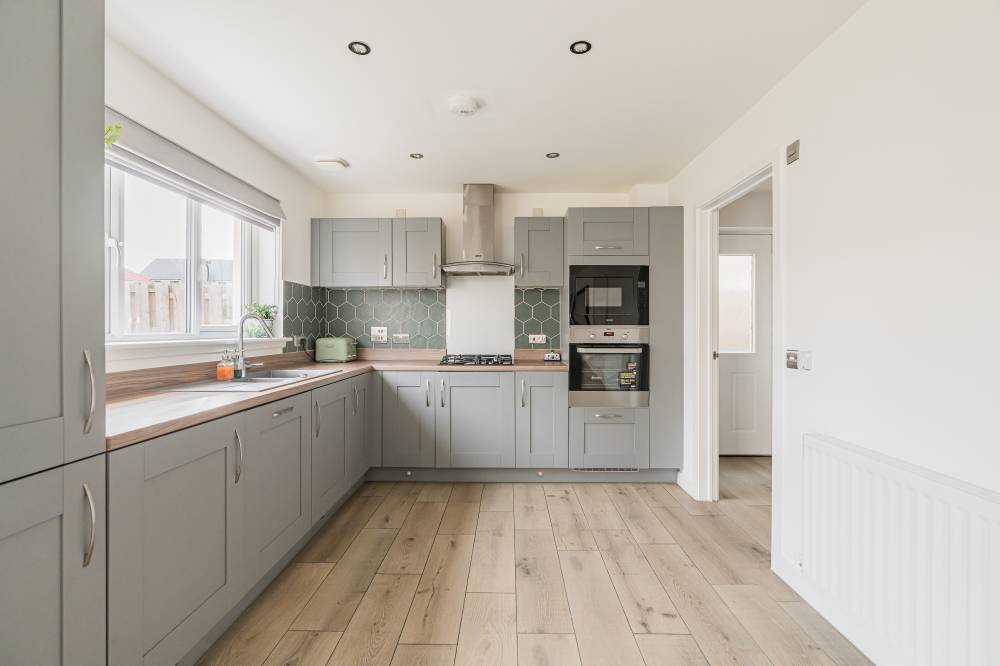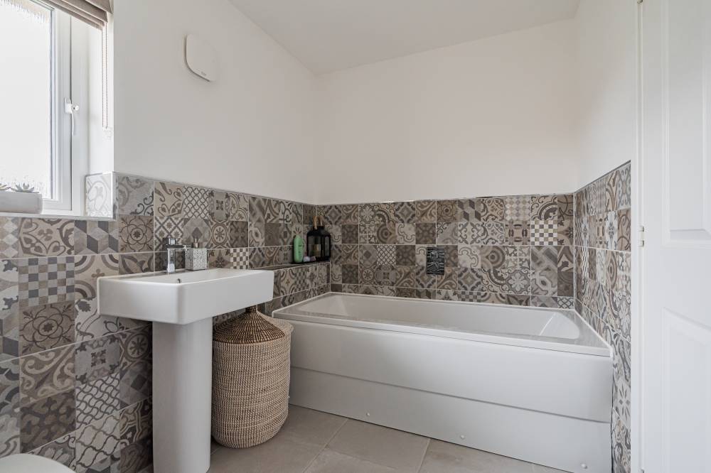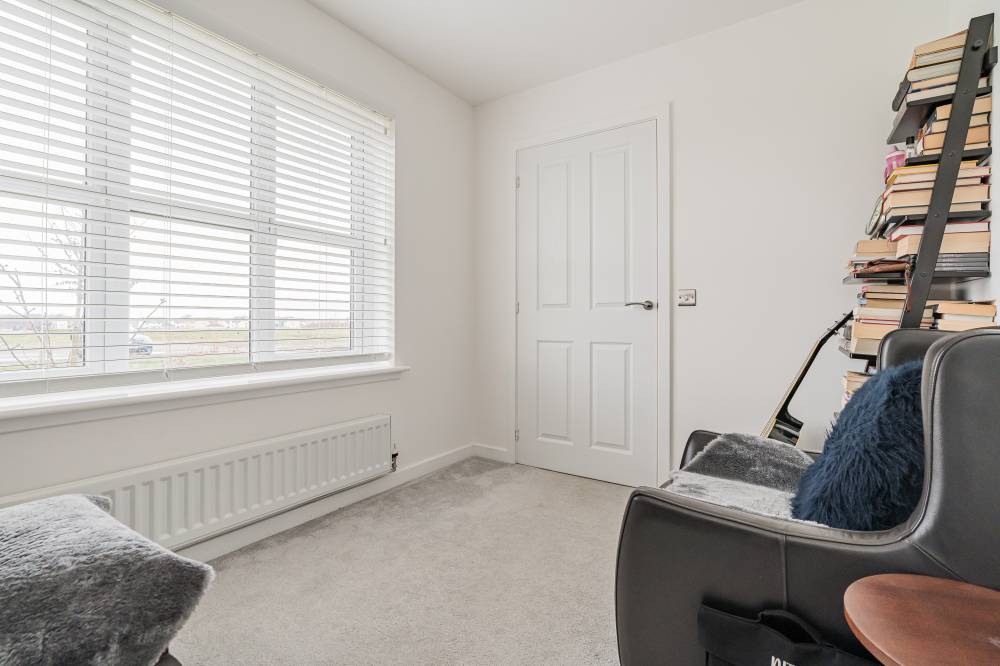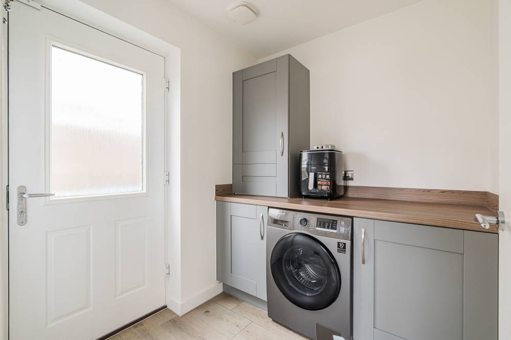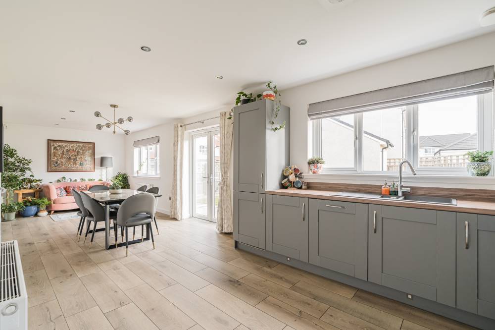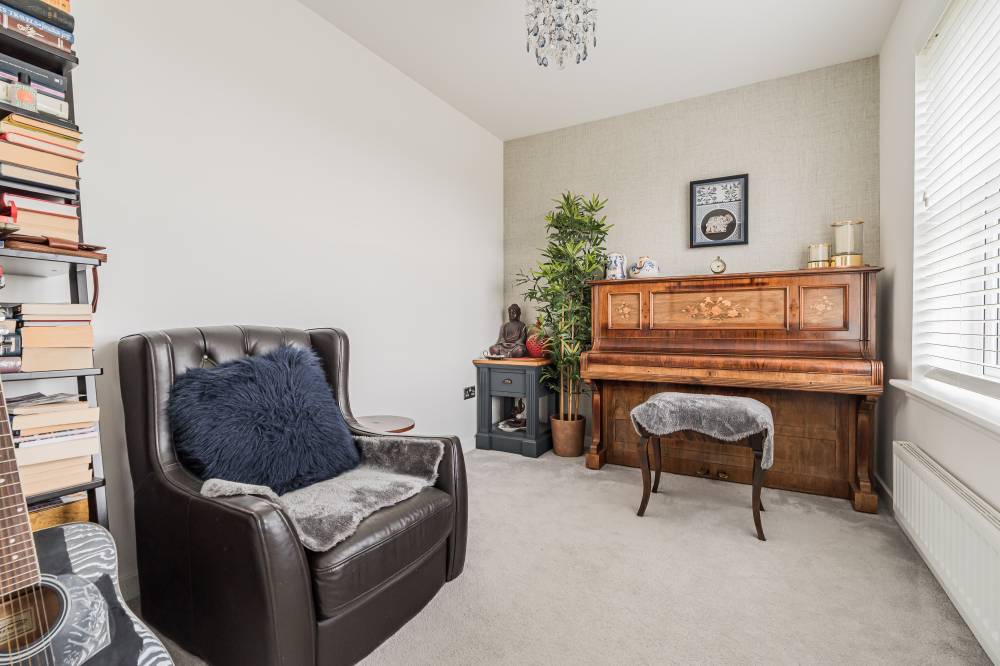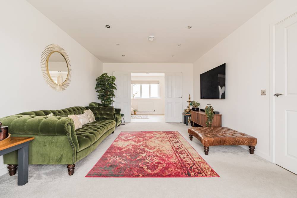 Unlike a brand-new build, this “second-hand new build” has already been road-tested, with landscaping established and early snagging resolved, allowing buyers to move straight in and enjoy the benefits from day one with the further benefit of no onward chain. The front door opens to a wide and welcoming reception hallway with useful storage and a guest cloakroom/WC. To the front, a bright box-bay reception room features double doors opening through to the heart of the home - a superb open-plan kitchen, dining and family space spanning the full width of the property. French doors from the dining area lead directly to the south-facing rear garden, creating a seamless indoor-outdoor flow ideal for entertaining. The contemporary kitchen is well equipped with integrated appliances, complemented by a separate utility room with side access. A versatile second reception room to the front, currently used as a music room, offers flexibility as a home office or fifth bedroom. Upstairs, the principal bedroom enjoys fitted wardrobes and a stylish en-suite, while bedroom two also benefits from its own en-suite. Two further generous double bedrooms with built-in wardrobes are served by a modern family bathroom. Additional storage is provided via a loft hatch and airing cupboard. The property further benefits from gas central heating, double glazing and solar panels with inverter in the under stair cupboard. A turnkey modern home combining the advantages of contemporary construction with the reassurance of a settled, established setting.