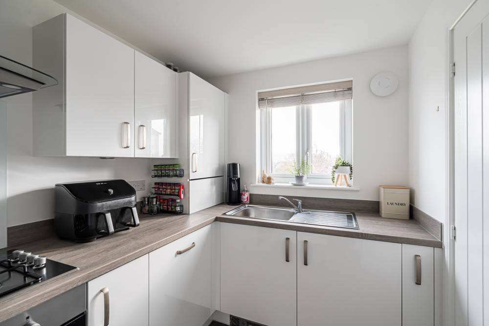 In brief the attractive accommodation comprises; welcoming entrance hallway with built-in storage and useful WC located off, modern fitted kitchen with integrated appliances and pleasantly overlooking the front, generously proportioned and bright lounge/dining room with doors providing direct access to the private rear garden, two well proportioned double bedrooms and contemporary bathroom with three-piece suite and shower over bath. Further benefits include gas central heating, double glazing and the property is still under developer warranty until June 2027 and a further 8 years of NHBC warranty.