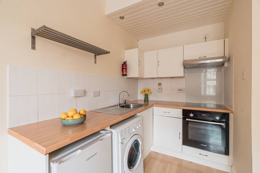 Quietly positioned to the rear of the building and accessed via a secure stairwell, the accommodation briefly comprises of entrance hallway, light and airy lounge which is open plan to a fitted kitchen with a range of wall and base units with wooden worktops and tiled splashbacks, a bedroom complete with a fitted cabin bed, and a bathroom with a white suite, shower over the bath and heated towel rail. The property further benefits from electric heating and double glazing.