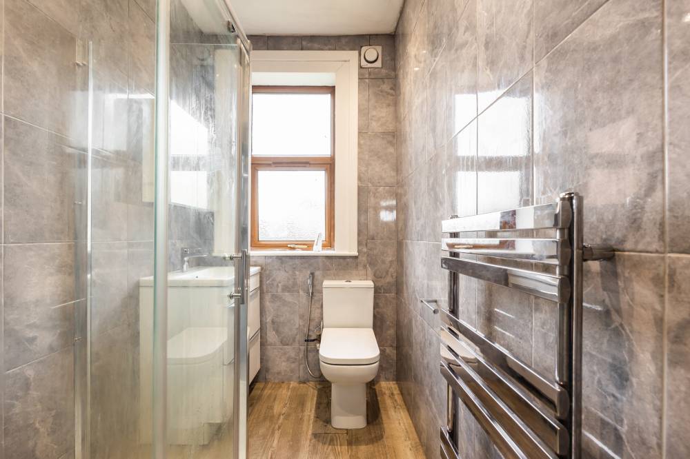 A welcoming entrance hallway provides access to a useful understairs cupboard, offering practical storage. The lounge/diner is airy and spacious, featuring twin front-facing windows that allow for excellent natural light and create an inviting living space. The fully fitted kitchen offers a good range of integrated and freestanding white goods, complemented by partial tiling in splash areas and generous storage and worktop space. Both bedrooms are comfortable double rooms, each offering ample space for freestanding furniture and flexible configurations to suit individual needs. The modern shower room is fully tiled and fitted with a walk-in rainfall shower and heated towel rail, creating a sleek finish.
