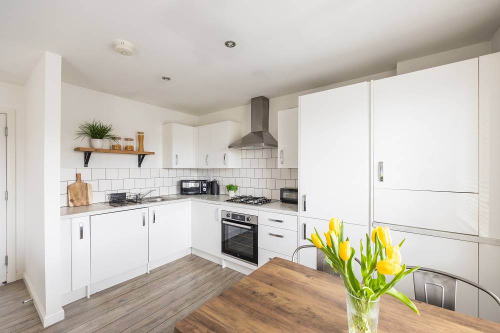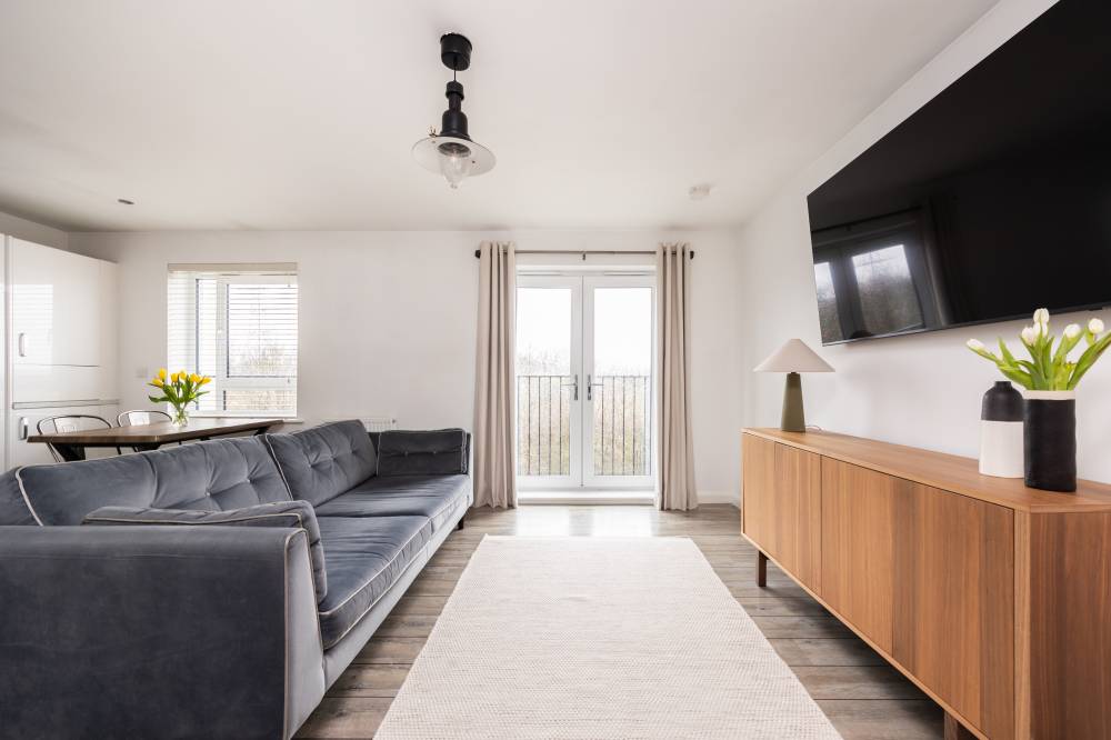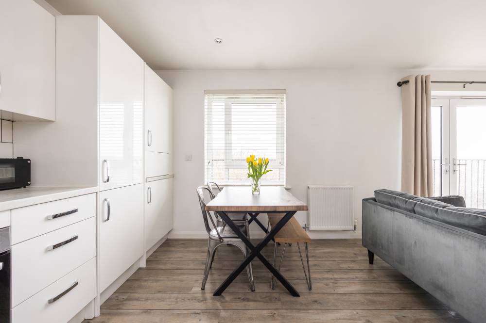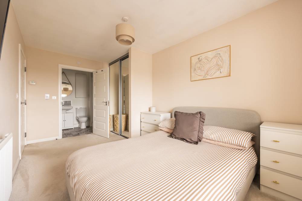 The stylish, light-filled accommodation is offered to the market in move-in condition undoubtedly appealing to the first time buyer or couples seeking a fine home in a convenient location, perfectly positioned for access to the city bypass and within walking distance of Straiton Retail Park. Enjoying uninterrupted views to the front, the property comprises; entrance hallway with excellent storage provisions. There is a delightful, 19’ reception/dining room with open plan contemporary kitchen affording open aspect to the front and featuring a Juliette balcony. The room divides naturally into sitting and dining kitchen with the kitchen itself fully integrated with built-in gas hob, electric oven, hood, integrated fridge freezer and washing machine. There are two generous double bedrooms, with the principal bedroom fitted with mirrored wardrobes and benefiting from a stylish en-suite shower room. Lastly the modern, part tiled bathroom comprises of a white three piece suite. Further benefits include gas central heating and double glazing together with a secure entryphone system into the well kept communal stairwell.