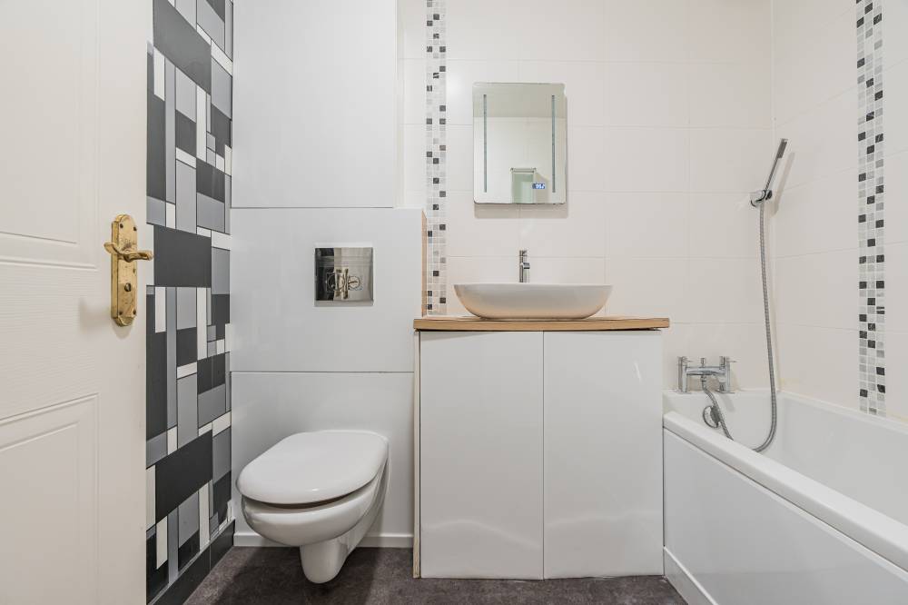 Internally the accommodation is well presented throughout and briefly comprises: extensive hallway with built-in storage cupboard, generously proportioned south and west facing reception/dining room with near floor to ceiling windows, carpeted floor and fresh neutral décor, stylish contemporary kitchen fitted with a range of white base and wall mounted units, complete with coordinated worktops, splash tiling and an assortment of integrated appliances, bright and spacious principal bedroom with fitted mirrored wardrobes and attractive, recently upgraded en-suite shower room, a further good sized double bedroom with fitted wardrobes, a smaller double which would work well as a home office/guest bed or nursery, and recently modernised family bathroom with counter top basin, WC, bath and tiling to walls.