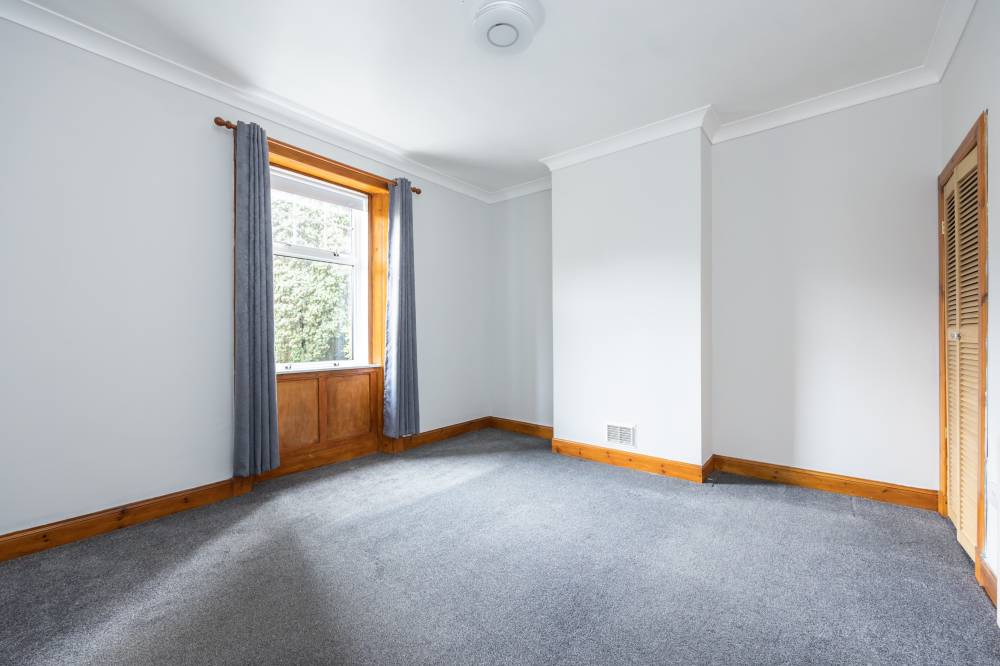 To the front of the property are two well-proportioned double bedrooms, both finished with carpeted flooring. One-bedroom benefits from built-in storage, while the other retains a charming working fireplace, adding to the home’s period appeal. A third bedroom provides a compact double, suitable for use as a child’s bedroom, guest room or home office.