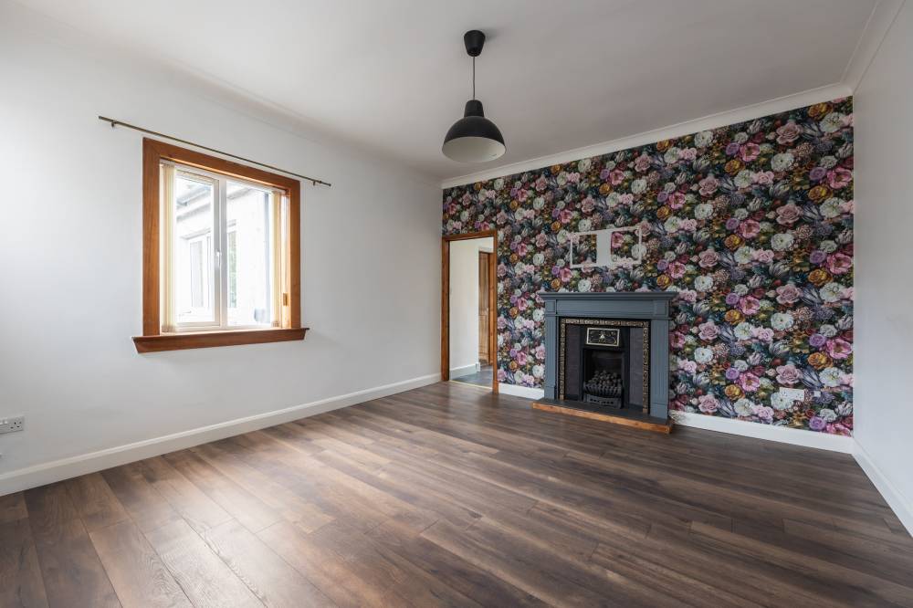 The accommodation is accessed via a vestibule leading into a welcoming hallway, providing access to the principal rooms. To the rear of the property, the reception room enjoys a peaceful outlook over the garden, creating a calm and private living space. This attractive room features laminate flooring and a focal fireplace, offering both character and comfort.