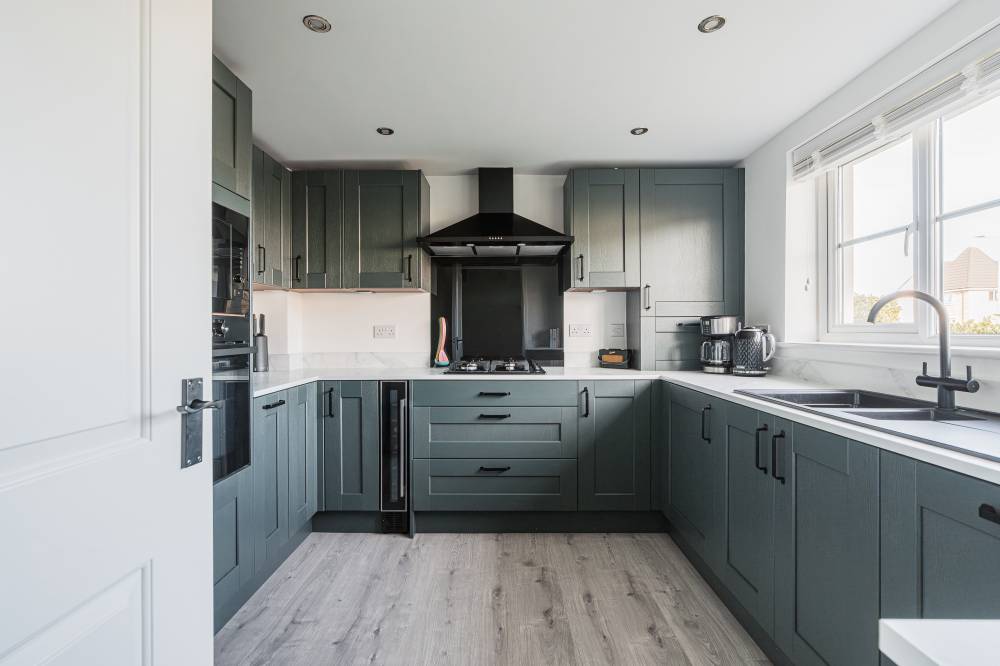 Presented in true move-in condition, the property offers flexible and generously proportioned accommodation over three levels. The home is entered via a welcoming reception hallway, which benefits from a spacious cloaks cupboard and a convenient ground-floor WC. To the rear, the comfortable lounge and dining room is flooded with natural light, enhanced by French doors and a complementary window formation that provide direct access to the landscaped rear garden, creating an ideal space for both everyday living and entertaining. To the front of the property, the recently installed kitchen is stylishly finished and thoughtfully designed, featuring a range of contemporary green wall and base units, integrated appliances, and ample worktop space, offering a modern and practical environment for cooking and meal preparation. The first floor hosts three bright and well-proportioned bedrooms, all offering flexible accommodation suitable for family living, guest rooms, or home office use. A modern family bathroom completes this level. Occupying the upper floor is an impressive principal bedroom suite, which features a spacious open-plan dressing area with excellent storage and access to a contemporary en-suite shower room, providing a private and peaceful retreat.