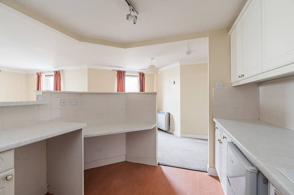 Accessed via a secure entry system, the property opens into a welcoming hallway, which provides practical storage space for coats, bags, and everyday essentials. The hallway leads through to the main living area, which is arranged in an open-plan layout, offering flexibility for both lounge and dining furniture. A private balcony is accessed directly from the lounge, extending the living space outdoors and providing a pleasant area to relax or entertain. The kitchen is fitted with a range of wall and base units, a breakfast bar, and a mix of integrated and freestanding appliances, creating a functional and stylish space for cooking and dining. The double bedroom is well-proportioned and benefits from two sets of built-in wardrobes with bi-fold doors, providing excellent storage while maintaining a spacious feel. The bathroom is fitted with a white three-piece suite and includes an electric shower over the bath, offering both convenience and practicality.