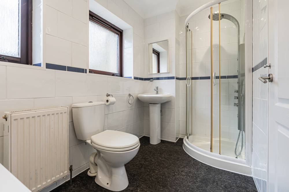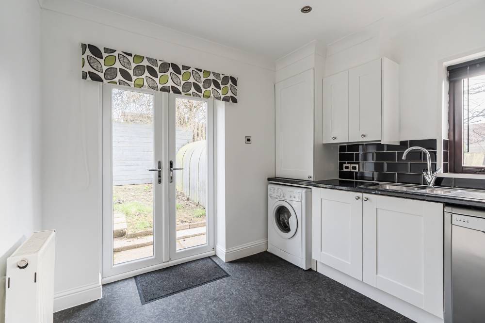 This charming home offers well-laid-out accommodation across a welcoming and bright interior. Entry is via a vestibule leading into a central hallway, which provides access to all principal rooms. The front-facing reception room is filled with natural light and features attractive hardwood flooring and neutral décor, creating a versatile space for relaxing or entertaining. The kitchen is fitted with a combination of white wall and base units, complemented by a mix of integrated and freestanding appliances, with tiling to splash areas for practicality. There are two generously proportioned double bedrooms, one to the rear enjoying a tranquil aspect and plush carpet flooring, and a second with an open aspect and carpeted flooring, both providing comfortable sleeping accommodation. The fully tiled bathroom features a contemporary three-piece suite alongside a separate shower cubicle, offering convenience and flexibility.