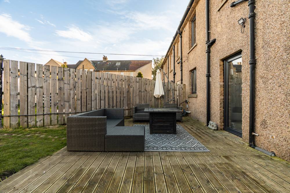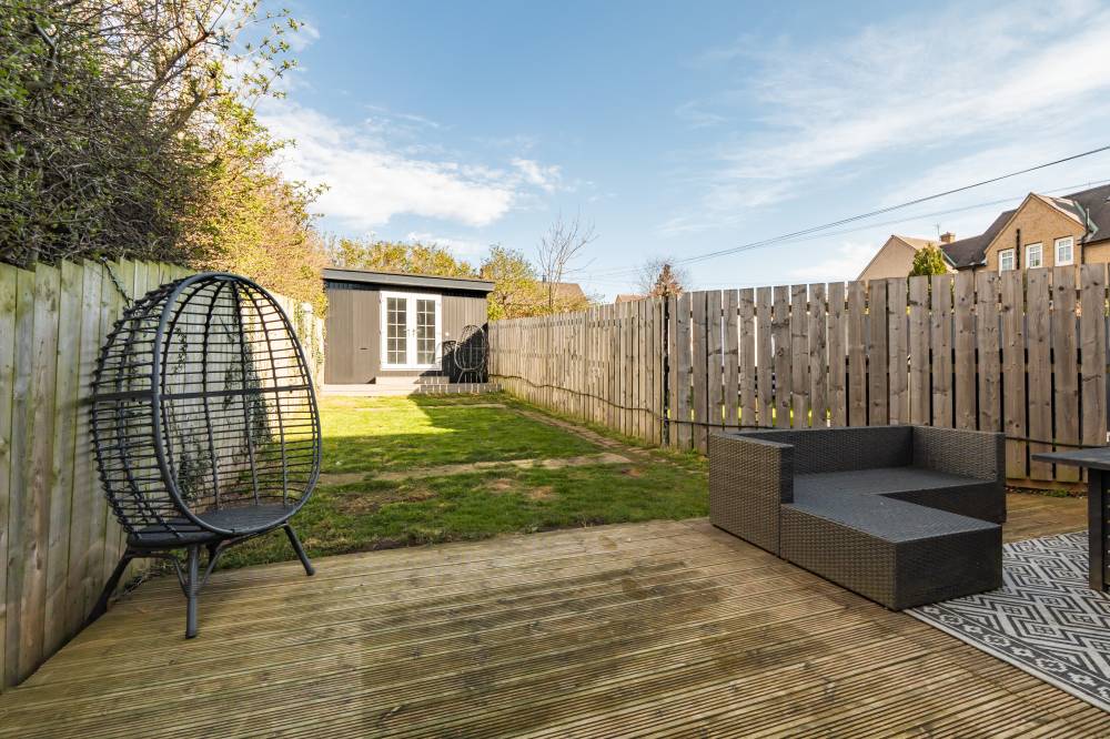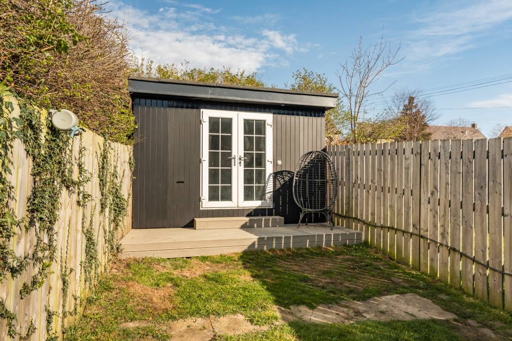 The property features a gravelled front garden, with potential to provide off street parking subject to the necessary consents. To the rear lies a generous, fully enclosed lawned garden with a decking area—perfect for outdoor dining, relaxing in the warmer months, and providing a safe space for children and pets. Additionally, a fully insulated outbuilding with lighting offers versatile space for a variety of uses. There is unrestricted on street parking.
