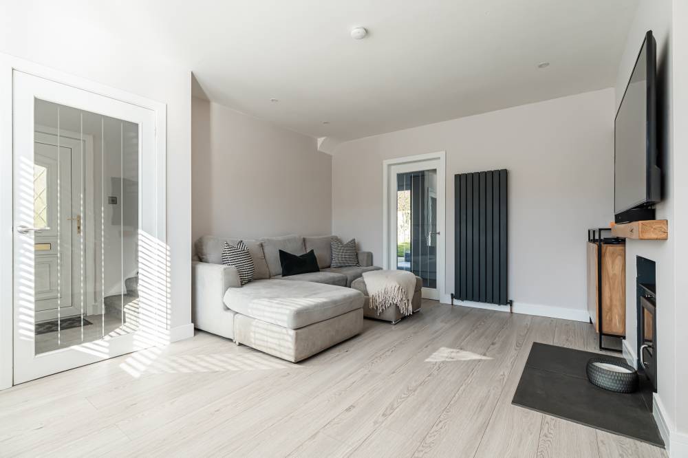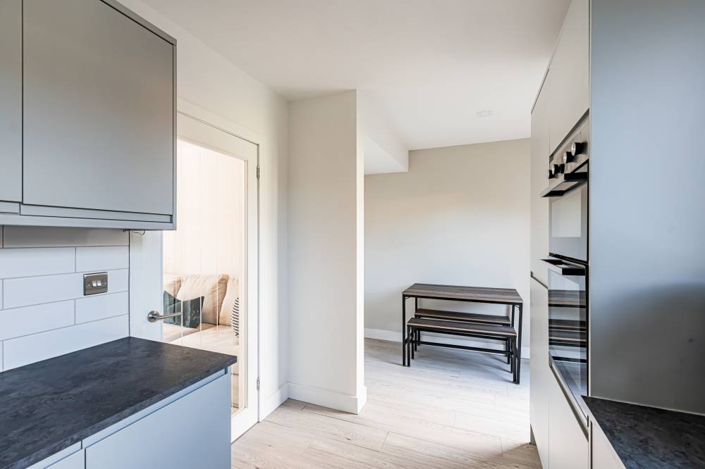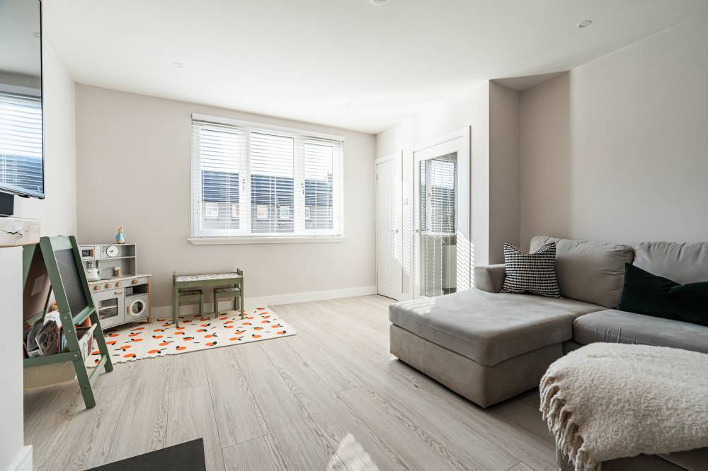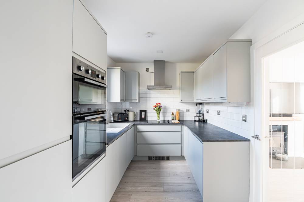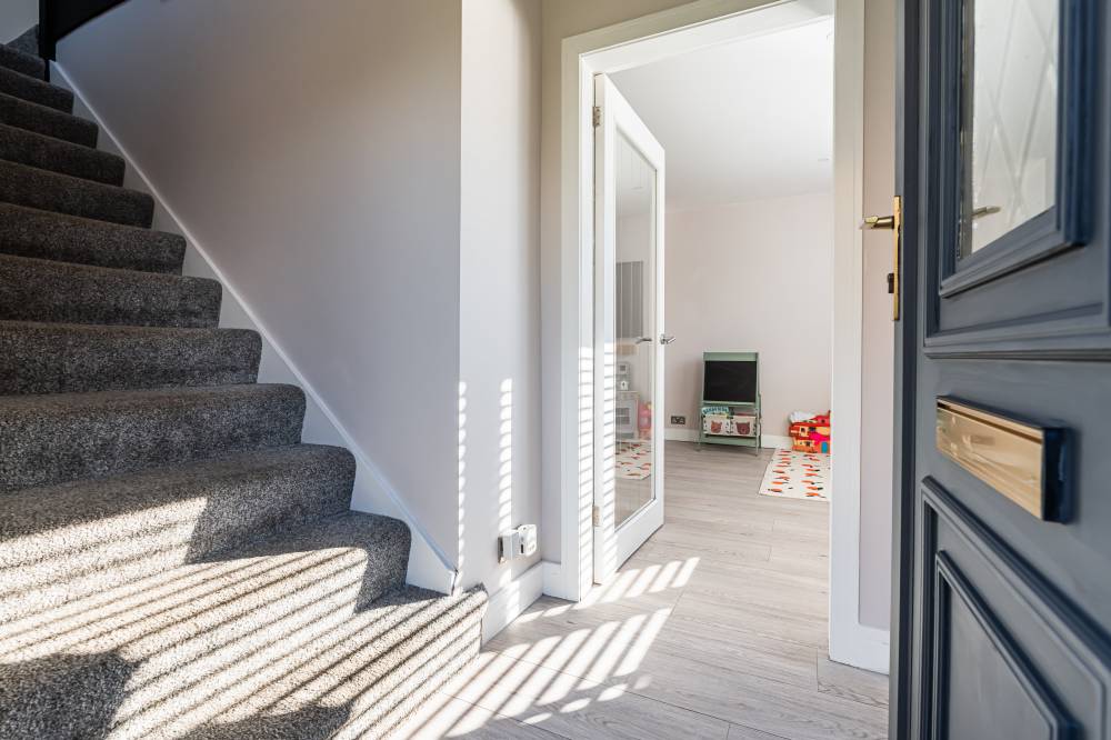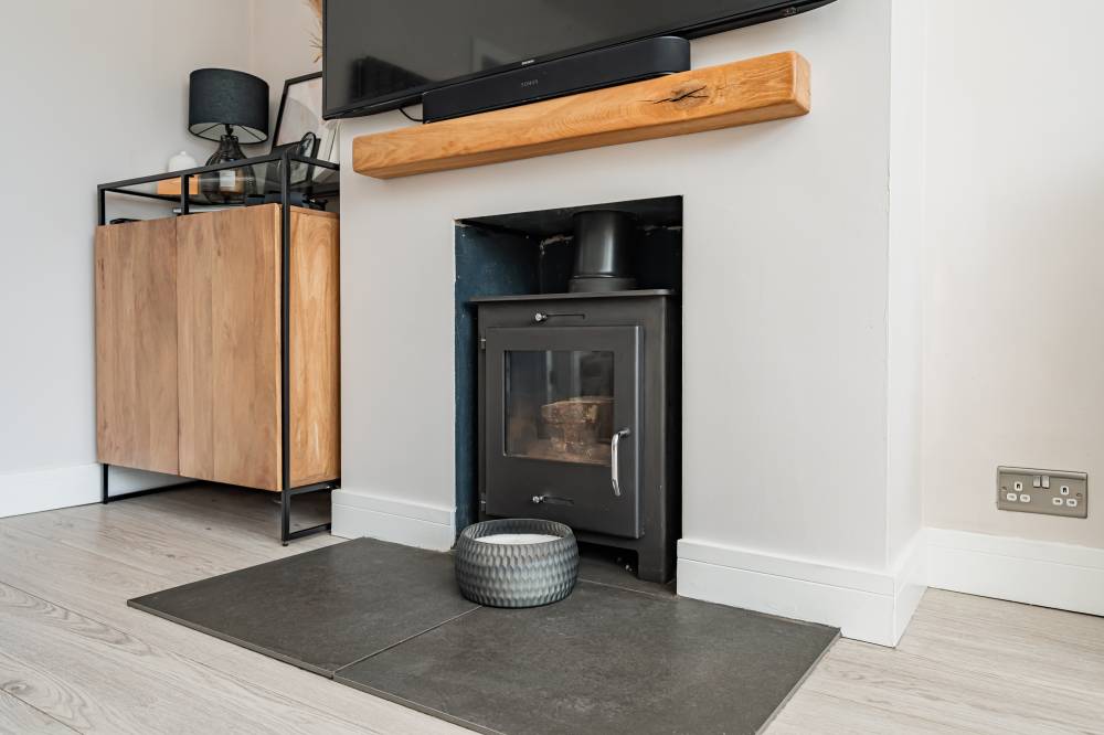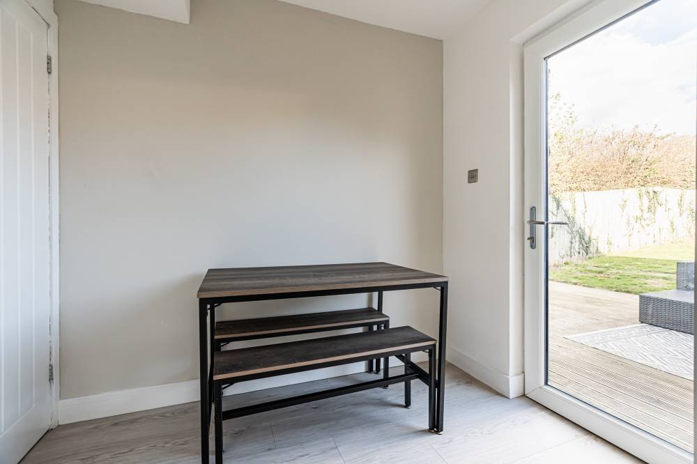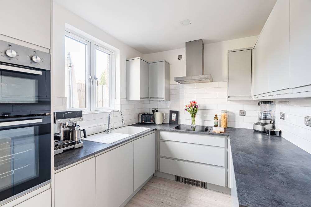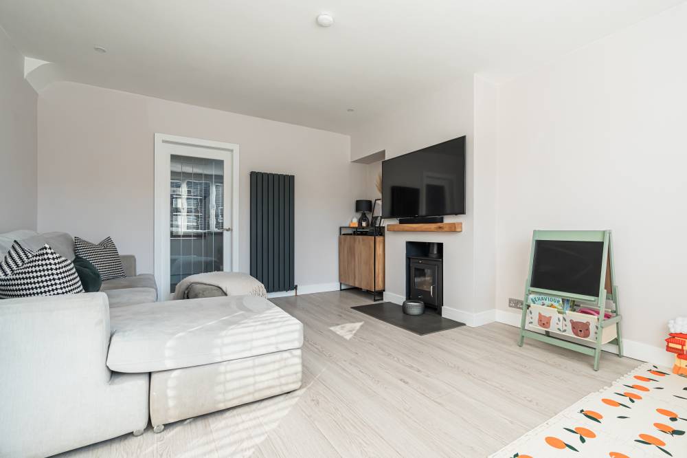 In true move in condition, the ground floor opens to a welcoming entrance hall leading to a light and airy lounge, complete with a charming wood burner, ideal for cosy evenings. The modern dining kitchen is fitted with sleek white wall and base units, with coordinated worktops and subway style splashback tiling, while an understairs storage cupboard adds practicality. A door from the kitchen provides direct access to the private garden, creating a seamless flow between indoor and outdoor living.