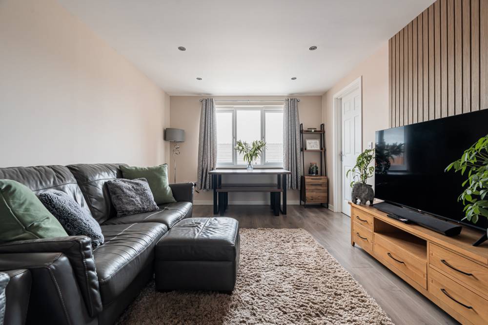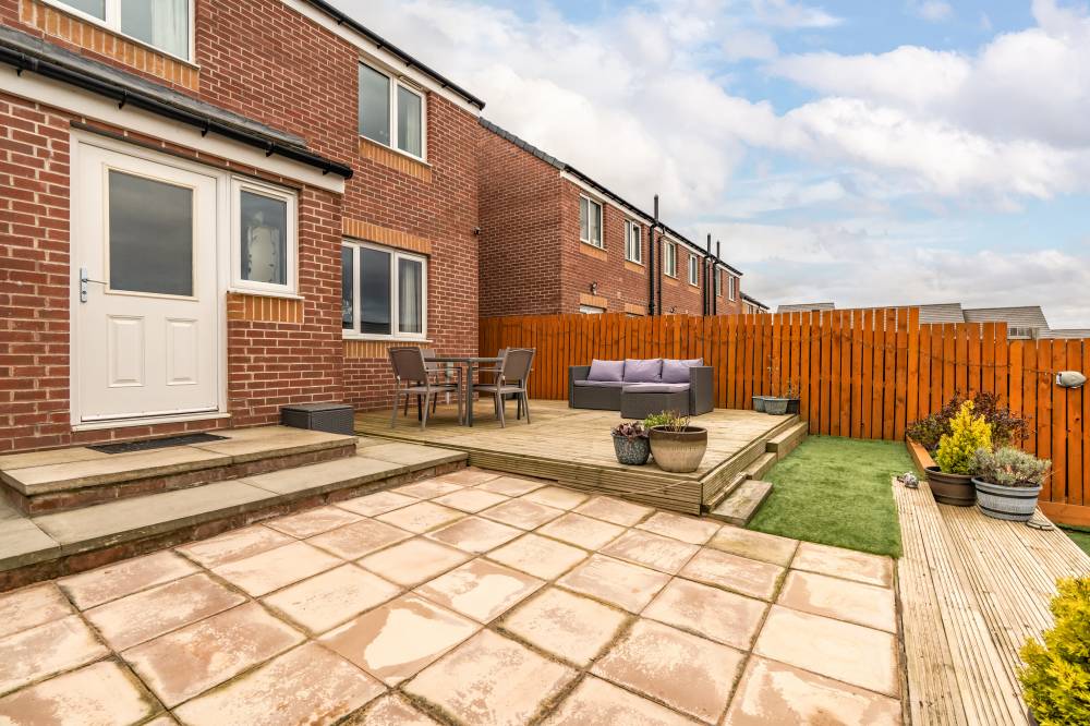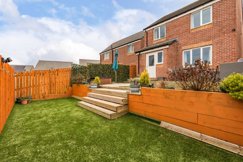 A neatly lawned front garden welcomes you to the property, whilst the rear boasts a fully enclosed, landscaped, tiered garden with low maintenance astro turf, a patio and decking – providing an ideal space for relaxing and entertaining, and a safe area for children and pets to play. The home also features an integral garage with an up and over door and a double driveway offering off street parking.