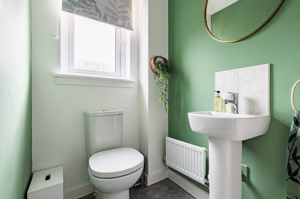 The ground floor briefly comprises a welcoming entrance hall with a convenient WC, a light and airy lounge with understairs storage, space for a dining table and a pleasant outlook over the garden, and a modern kitchen fitted with a range of wall and base units, coordinated worktops, subway-style splashback tiling and direct access to the rear garden.
