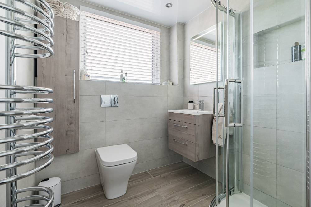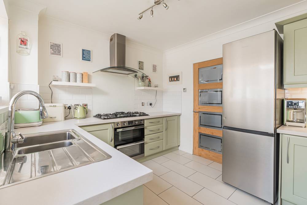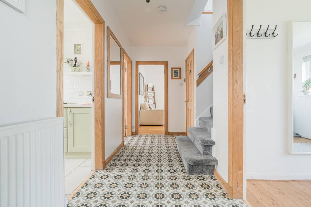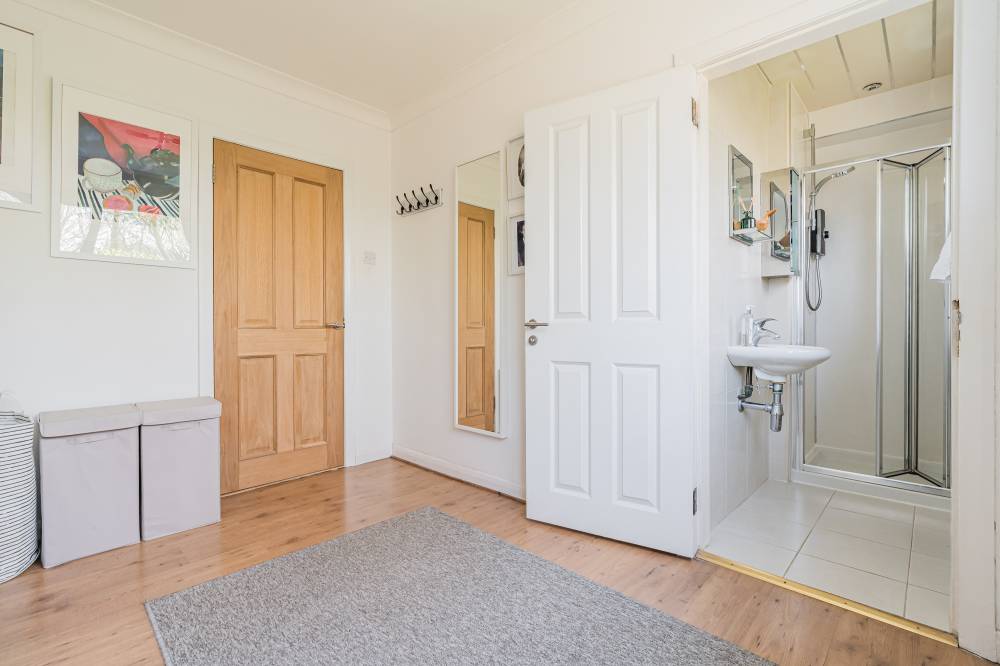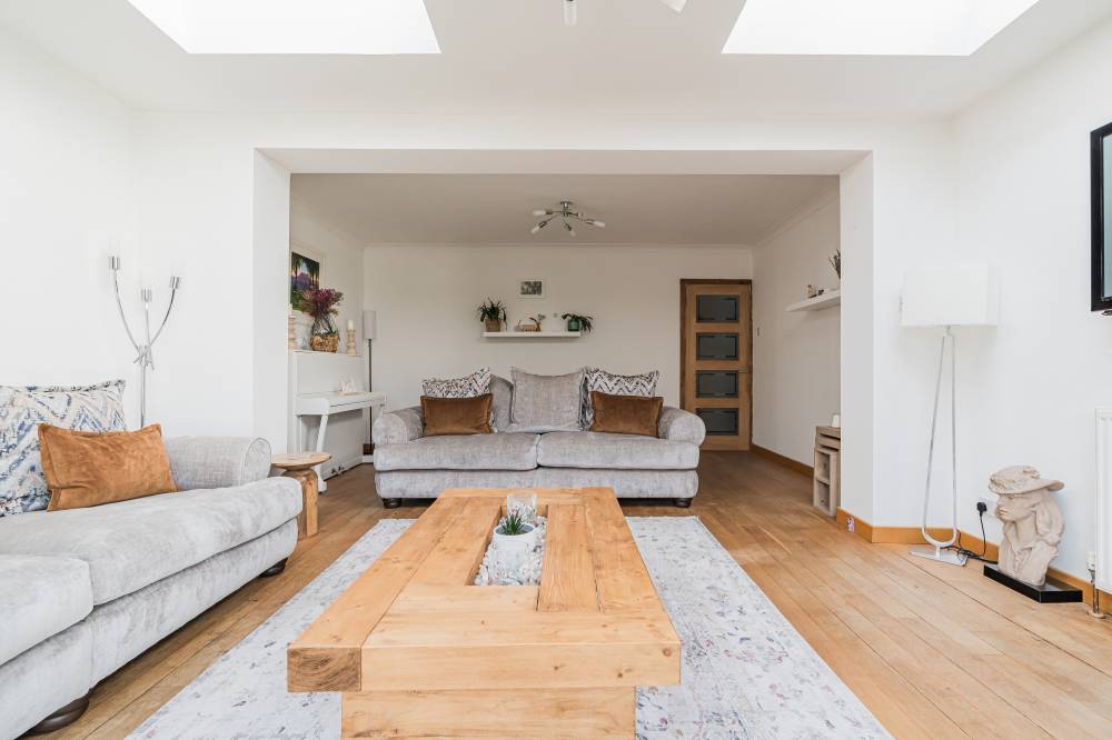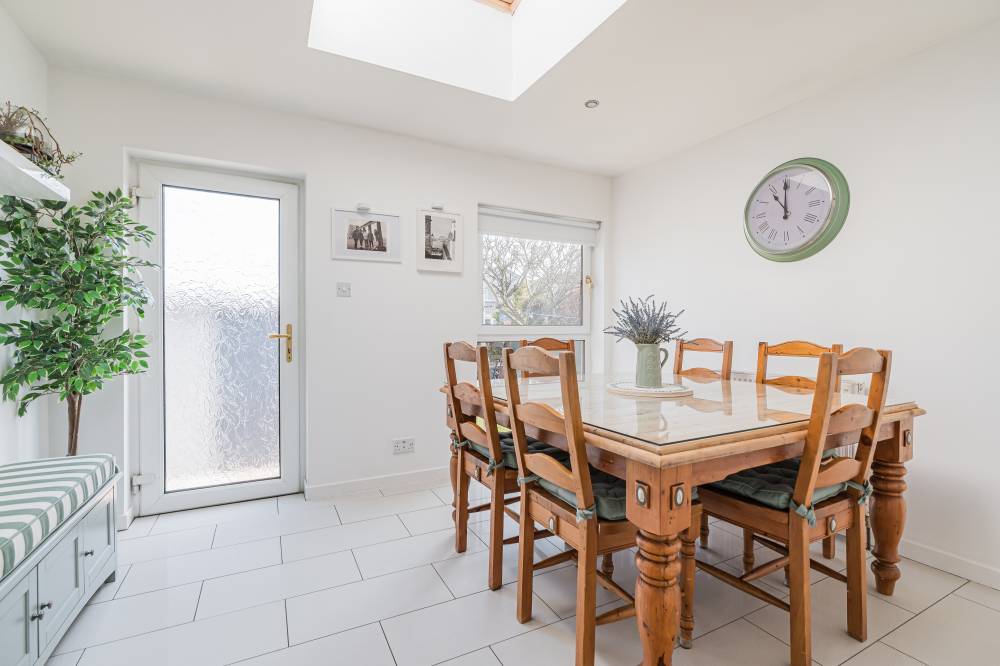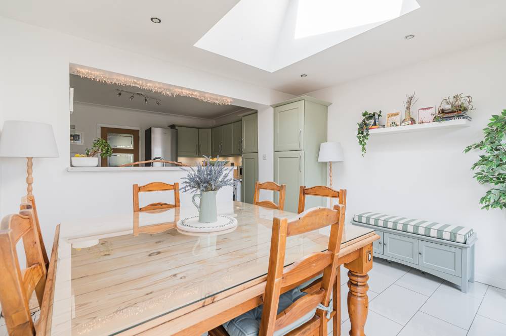 On the ground floor, a welcoming hallway leads through to a striking lounge, enhanced by two skylights and a full length window which flood the space with natural light while offering a pleasant outlook over the front garden. To the rear, a bright and airy sitting room with a gas fire flows seamlessly into the conservatory via sliding doors, together creating a relaxing and versatile living space. The modern fitted kitchen is well appointed with a range of wall and base units, co-ordinated worktops and subway style splashback tiling, and incorporates a dining area with a skylight and direct access to the garden. A convenient ground floor bedroom with en-suite shower room completes the accommodation on this level, along with a useful WC off the hall.