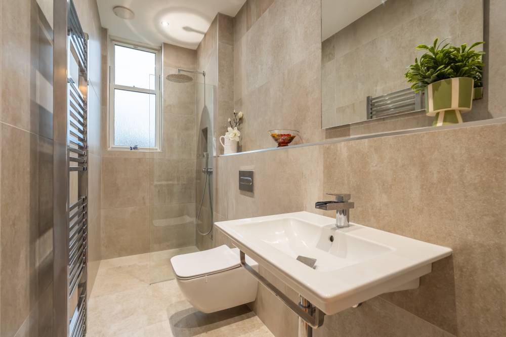 The property briefly comprises: welcoming hallway with built-in storage cupboard, generously sized bay fronted reception room with ornate cornice work/ceiling rose, sash and case double-glazed windows, attractive focal fireplace, and impressive open views over the surrounding area, versatile box room/study, spacious dining kitchen which has been fitted with a variety of sleek contemporary units, complete with coordinated worktops, ample dining space, a clothes pulley and a selection of high quality integrated appliances, useful utility room with sink and excellent additional storage, stylish modern shower room with wall mounted basin, under-floor heating, WC, and walk-in drench shower, two front facing double bedrooms with fresh neutral décor, an impressive open outlook and excellent storage, a rear facing double bedroom with a sunny south facing aspect, and luxury family bathroom with counter top basin and under-floor heating, bath, downlit display shelving and tiling to walls.