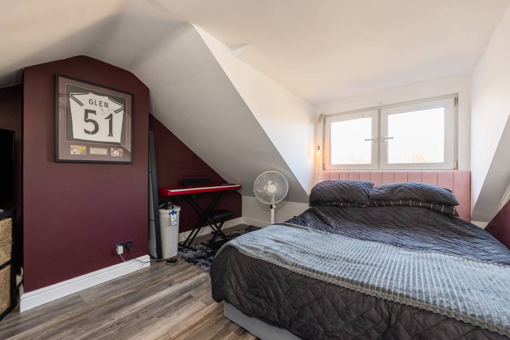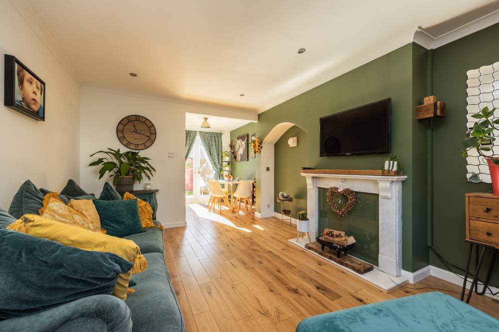 A welcoming entrance hallway includes a useful cloak cupboard for additional storage. The bright and airy lounge enjoys a pleasant front-facing aspect and flows through to the modern kitchen/diner. The kitchen/diner was fully upgraded in 2025 and provides an excellent space for everyday living and entertaining. It features a range of integrated and freestanding white goods, ample cupboard and worktop space, and French doors opening directly onto the rear garden. A handy understairs cupboard offers further storage. On the first floor, the landing leads to two comfortable double bedrooms, both benefiting from integrated storage and space for freestanding furniture. Bedroom four is a single room positioned to the front and offers flexible use as a study, nursery, or dressing room. The family bathroom is fully tiled and fitted with a shower over the bath along with a heated towel rail. The second floor landing features a bright study area with a Velux window, creating an ideal home working space. The principal bedroom is a comfortable double offering flexibility for different furniture configurations and includes useful eaves storage. An en suite shower room completes the accommodation, finished with full panelling, tiled flooring, and a rainfall shower.