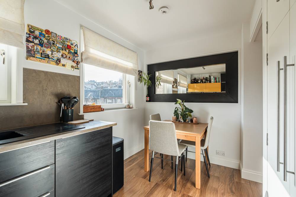 This bright and well-proportioned top floor flat enjoys a peaceful setting within the highly sought-after area of Blackford, in south Edinburgh. The property benefits from an elevated position with excellent open aspects on all sides, allowing for expansive views from every window and an abundance of natural light throughout. Blackford is a popular residential district, well placed for a wide range of local amenities and excellent transport links into the city centre.