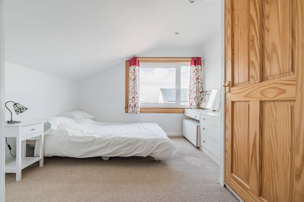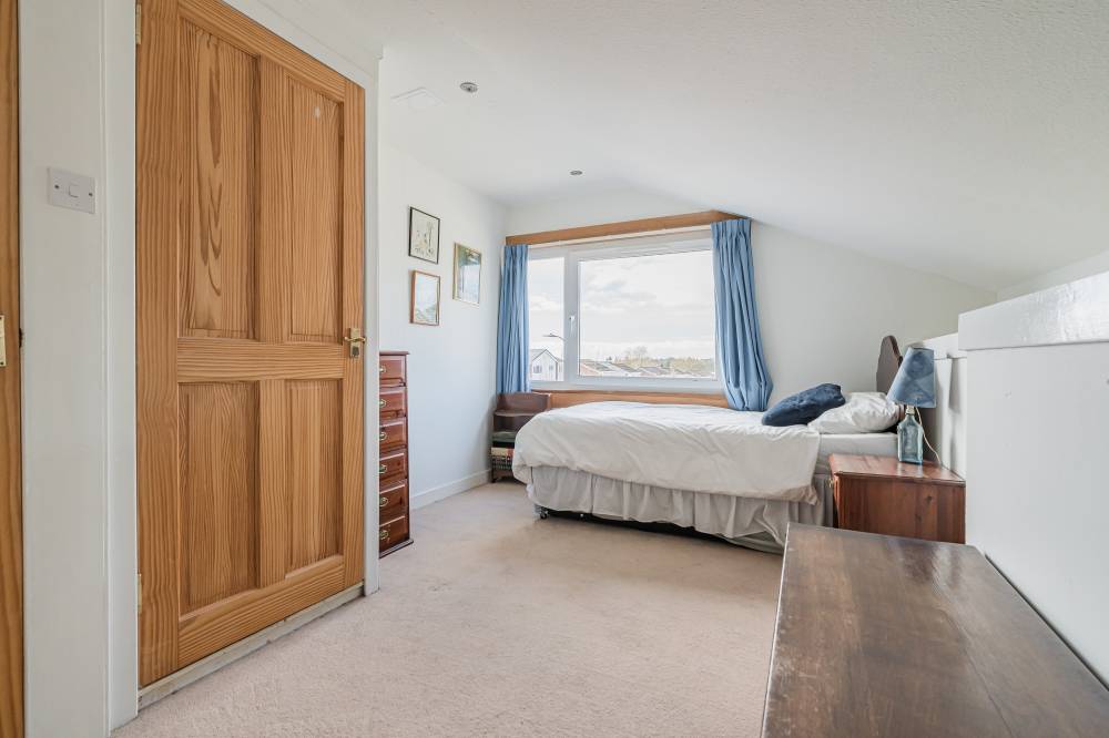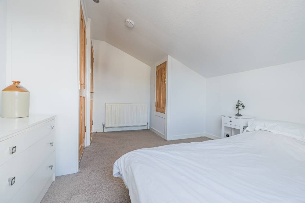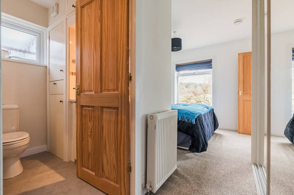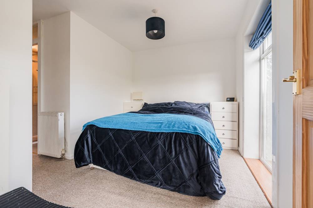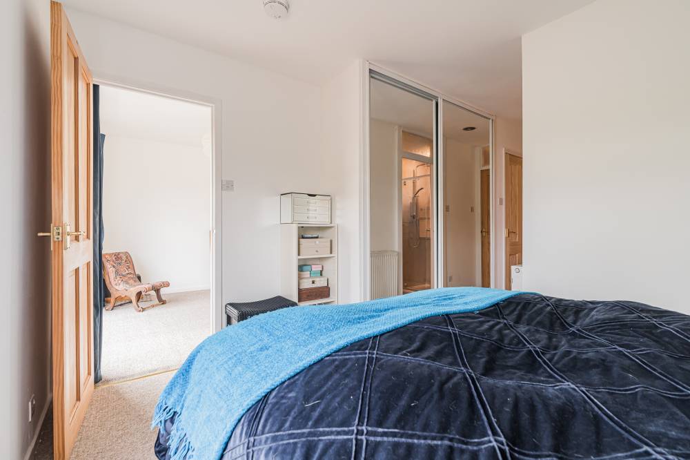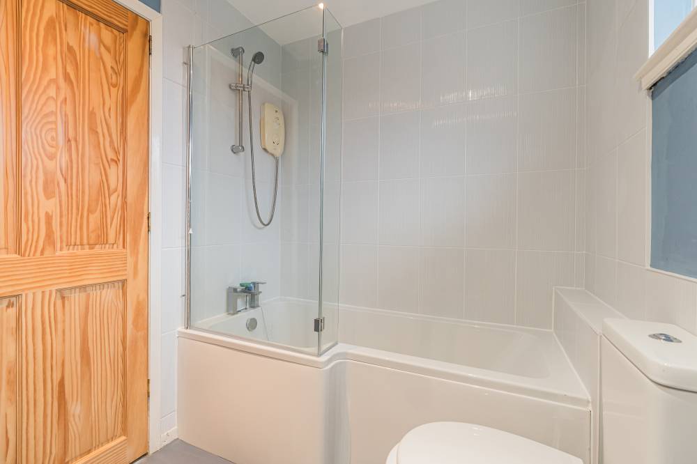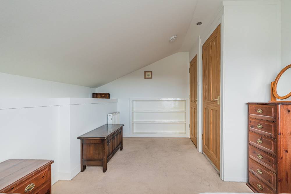 The space continues with a well-proportioned south facing principal bedroom complete with walk-in wardrobe, fitted wardrobes and en-suite shower room, a downstairs double bedroom which is currently in use as an additional reception room, two similarly sized double bedrooms on the upper level both with storage, and finally the main family bathroom with three piece white suite, tiling to splash areas and over-bath electric shower/splash screen.