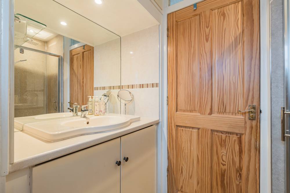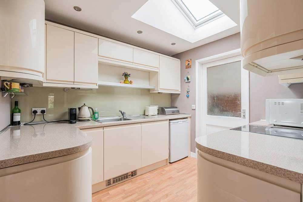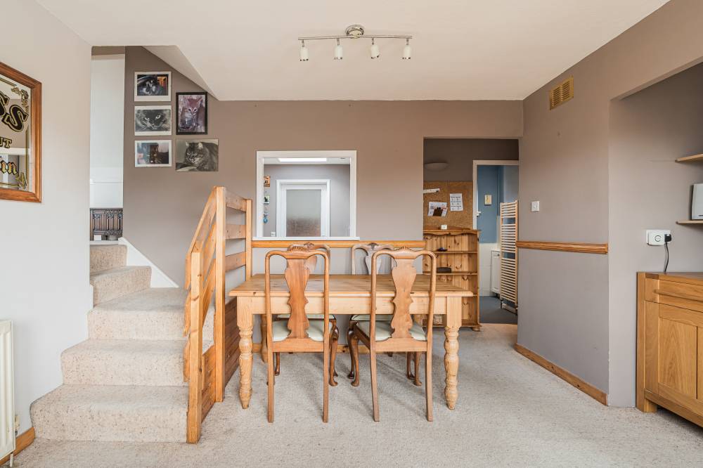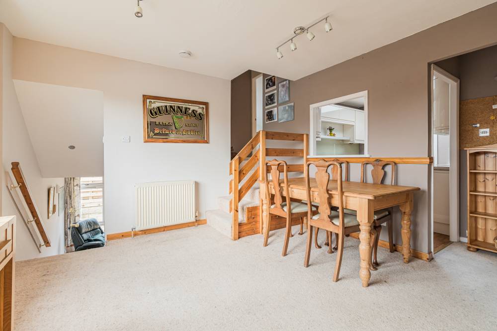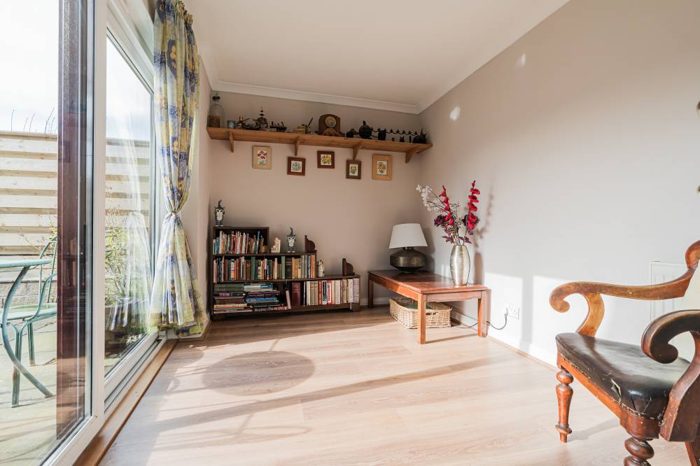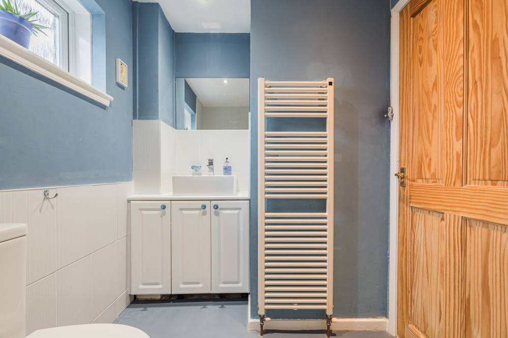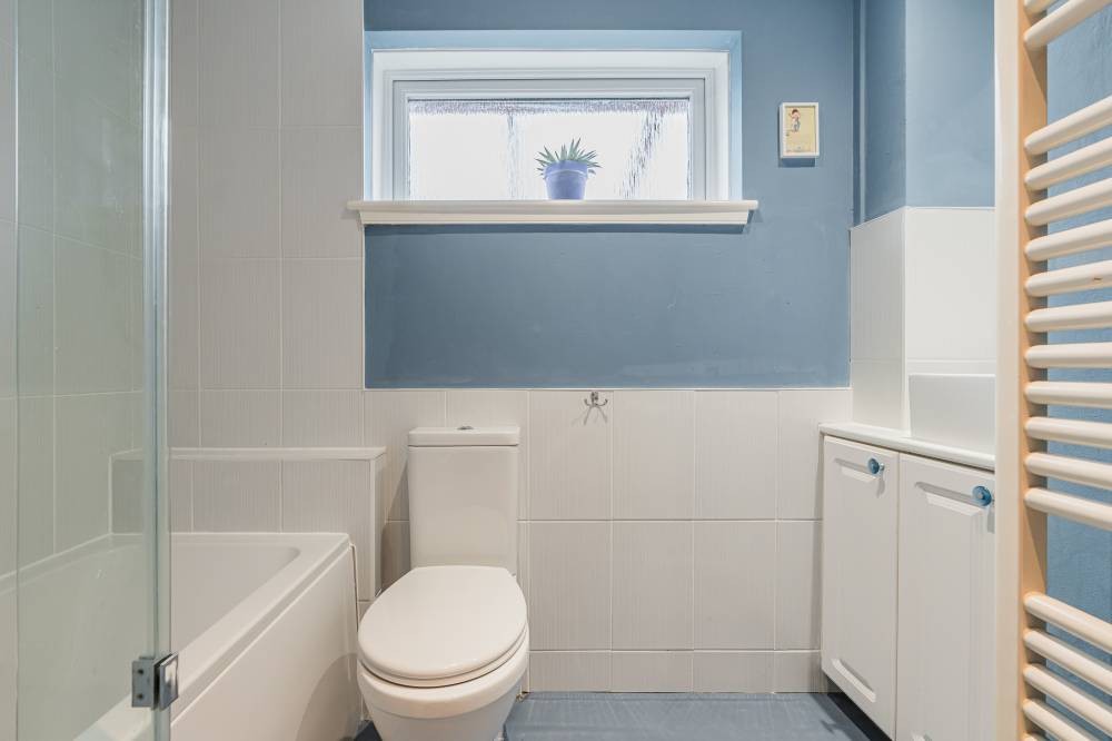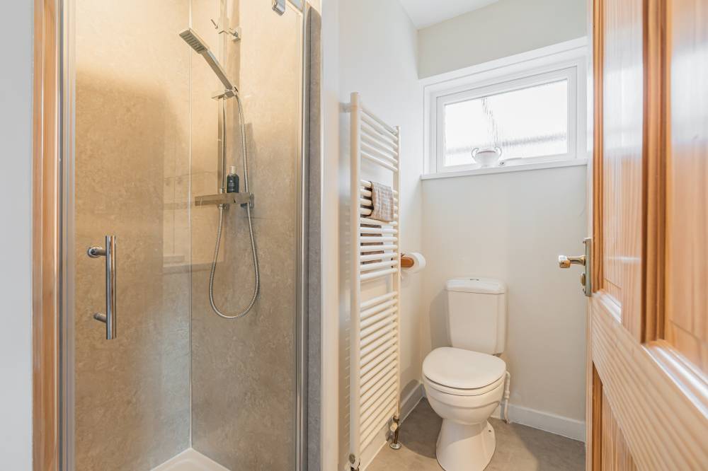 The space continues with a well-proportioned south facing principal bedroom complete with walk-in wardrobe, fitted wardrobes and en-suite shower room, a downstairs double bedroom which is currently in use as an additional reception room, two similarly sized double bedrooms on the upper level both with storage, and finally the main family bathroom with three piece white suite, tiling to splash areas and over-bath electric shower/splash screen.