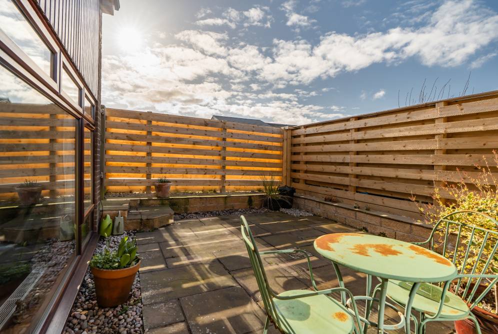 To the front of the house a monobloc driveway provides superb off-street parking and sits next to an attractive private garden, packed with a variety of small trees and shrubs. To the rear is a tranquil, fully enclosed garden, laid to low maintenance paving and offering a peaceful spot to relax and entertain during the warmer months.