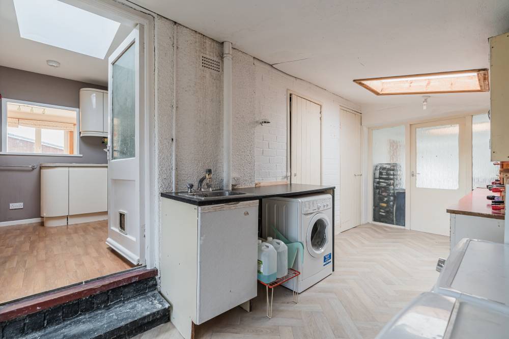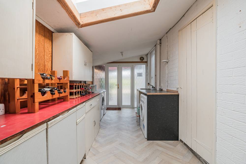 The accommodation is well presented throughout and briefly comprises: entrance hall, light filled dining hall which enjoys delightful west facing views over the over the neighbouring fields and acts as a natural hub of the house, steps lead down to a generously proportioned reception room with near floor to ceiling windows overlooking the rear garden and sliding doors leading to a versatile garden room which would make an excellent home office and has direct access to the outside, stylish modern kitchen with a range of cream base and wall units, complete with coordinated worktops, appliances and a skylight, a large utility room and store, with good potential to develop further (STC).