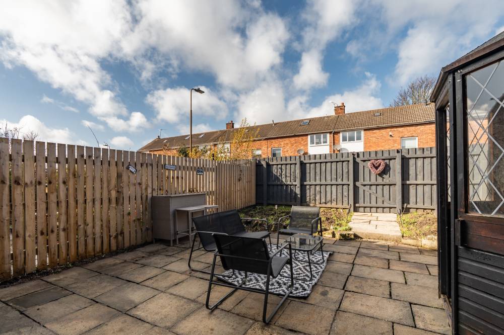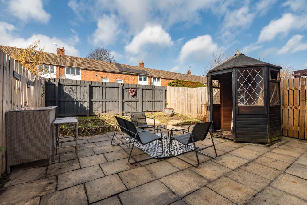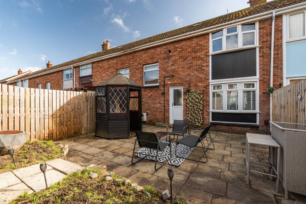 Externally, the property enjoys low-maintenance outdoor areas to both front and rear. The front garden is laid mainly with slabs and enhanced by established plants, bordered by attractive wrought iron railings. To the rear, the garden is again predominantly slabbed, complemented by mature shrubs that provide a good degree of privacy, perfect for relaxing or outdoor dining.