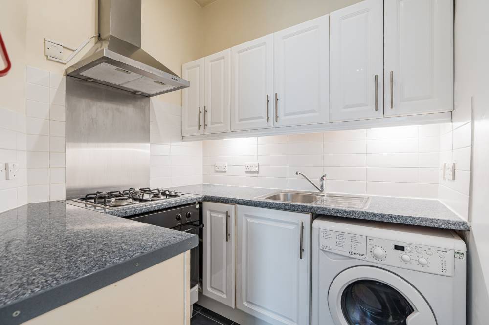 The accommodation opens with an inviting entrance hallway, providing access to all principal rooms. The lounge/diner is bright and airy, featuring a charming dining recess and fitted storage along the rear wall. A traditional press cupboard houses the boiler and offers additional practicality. The kitchen is well-equipped with a range of integrated and freestanding white goods, complemented by a partially tiled surround and enhanced by under-unit lighting. The bedroom is a comfortable double with a front-facing aspect, offering ample space for freestanding furniture and flexible layouts. The shower room is partially tiled and fitted with a corner shower cubicle and heated towel rail. A separate WC, also partially tiled and complete with a two-piece suite and heated towel rail, adds further convenience.
