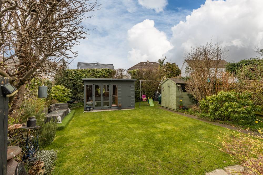 A particular feature of this home is the generous and sheltered southeast facing garden to the rear which has been thoughtfully planted and well-maintained to provide year-round colour and interest. There are good sized lawn and decking areas, providing the ideal spot for al fresco dining or relaxing outdoors during the warmer months. A summer house offers a sheltered space to relax or entertain and a timber tool shed is also included in the sale. To the front, the house is set back from the street with a neat front garden with pebble chipped area privet and conifer hedges. A large monoblocked driveway offers off street parking with further unrestricted on-street parking also available.