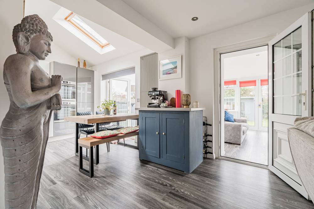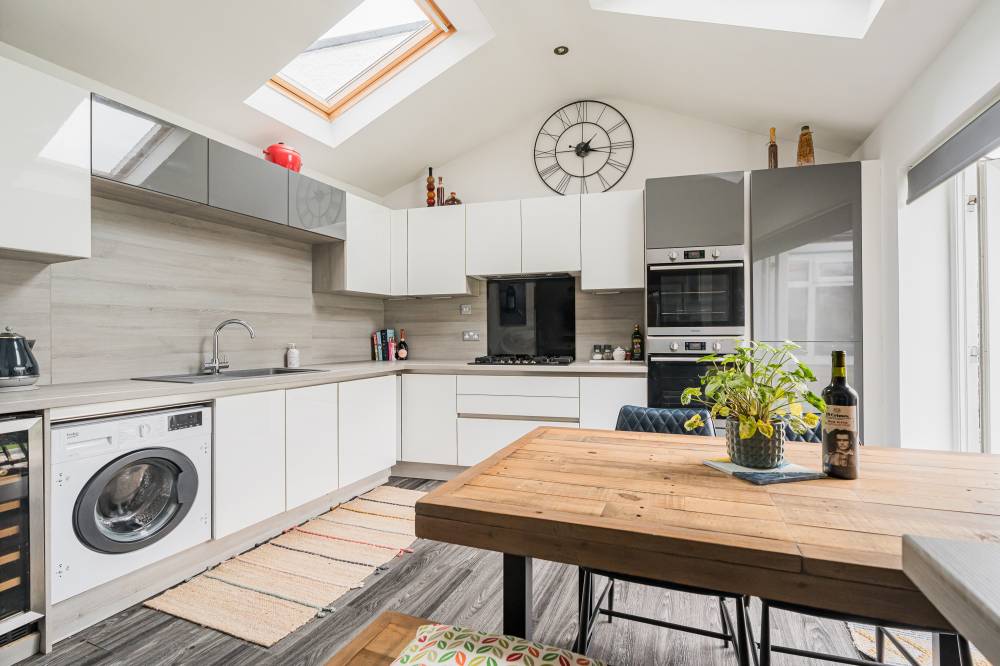 This beautifully presented home offers genuinely spacious and flexible accommodation over two floors, ideal for both family life and entertaining. The sociable heart of the home is the superb open plan reception, dining and kitchen space to the rear, which seamlessly connects to the garden via French doors, for perfect indoor/outdoor living during the warmer months and further enhanced by a sun room, perfect for enjoying the garden whatever the weather. The kitchen area features a vaulted ceiling with velux windows, flooding the space with natural light and is fitted with sleek modern units with integrated appliances, whilst the reception room has a fireplace feature with a stove, perfect for cosy evenings in. There is ample space for a dining table and chairs. The sun room offers flexible use as a sitting room or dining room. The principal bedroom to the ground floor is to the front and has a bay window and fireplace and it is served by a luxurious bathroom with contemporary fittings with a free standing bath, separate walk-in shower and twin sinks. Upstairs, there are three further good sized bedrooms and a smart modern shower room with white suite and vanity storage. Benefits include gas central heating and full double glazing. Ample built-in storage is provided throughout the home and there is a loft space accessed from the landing which is part floored for storage.