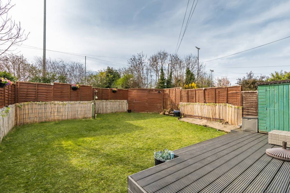 Externally, the property continues to impress. To the front there is a decorative lawned garden and a private gated driveway providing off-street parking, with additional on-street parking available for visitors. The enclosed rear garden is designed for easy enjoyment, featuring a decked area directly accessed from the house, a lawn section, and a timber shed providing useful outdoor storage.