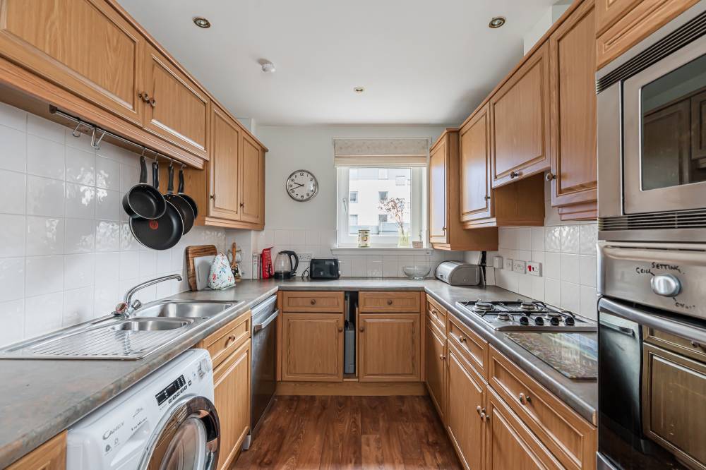 The accommodation opens with an inviting entrance hallway, offering handy storage provisions. The lounge/diner is bright and airy, featuring a double Juliet balcony which frames fantastic views towards Arthur’s Seat – creating a truly impressive focal point. The kitchen is well-equipped with a range of integrated and freestanding white goods, complemented by partial tiling in splash areas and a good selection of cupboard and worktop space. The principal bedroom is a comfortable double, benefitting from large integrated mirrored wardrobes and ample space for additional freestanding furniture. The en-suite is partially tiled and fitted with a double shower cubicle. The second bedroom is another well-proportioned double, also featuring integrated mirrored wardrobes. The main bathroom is partially tiled and fitted with a shower over the bath.