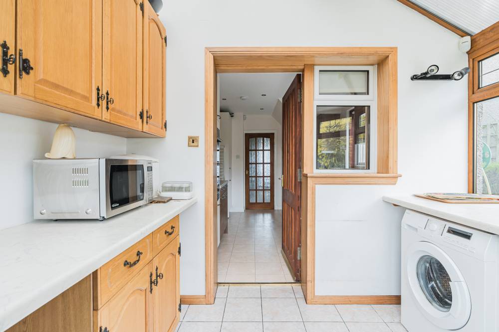 In brief the accommodation comprises entrance vestibule leading to welcoming reception hallway, generously proportioned and bright bay-windowed lounge offering pleasant views, double doors to light and airy dining room, stylish fitted kitchen, well proportioned conservatory with door providing direct access to the rear, useful utility room with door to rear, fantastic sized principal bedroom with bay-window and fitted storage, two further well proportioned bedrooms and family bathroom with three-piece suite and shower over bath. Further benefits include gas central heating and double glazing.