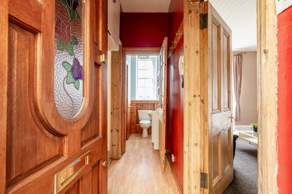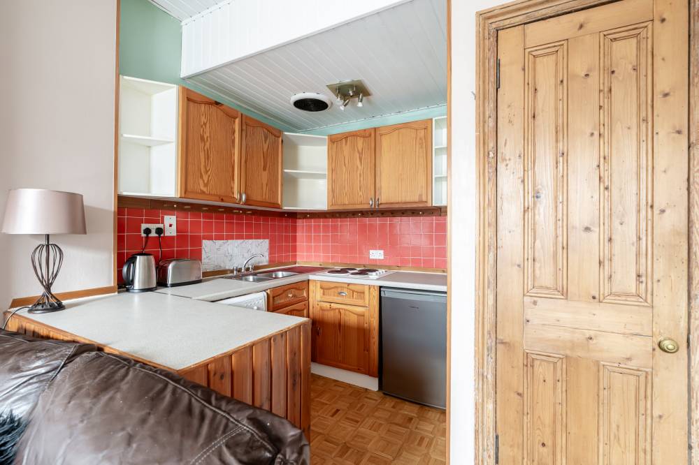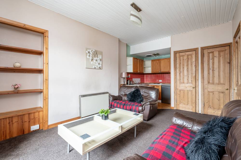 The well proportioned, light-filled property, would now benefit from modernisation/upgrading yet offers an excellent opportunity for a buyer with a vision to create a bespoke home in an excellent location, undoubtedly appealing to the first time buyer/couple or rental investor alike. The accommodation comprises entrance hallway, good sized open plan reception/dining room/kitchen with window to front, exposed shelved press and large cupboard. The kitchen itself is fitted with a range of wall and base units with built-in electric hob, separate electric oven, fridge and washing machine. The sizeable double bedroom, again with front-facing aspect has shelved press and overhead storage and features a traditional fireplace. Lastly the shower room comprises of a three piece suite with WC, wash hand basin and shower tray with electric shower. There is a partial electric heating system.