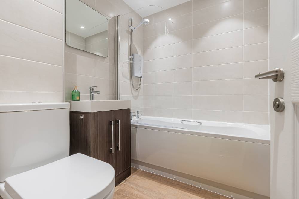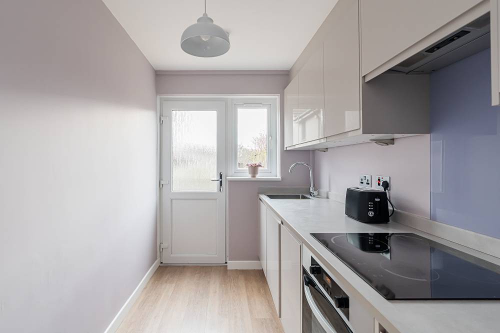 The accommodation begins with an entrance porch, leading into a bright and airy lounge/diner with a pleasant front-facing aspect. This well-proportioned space offers ample room for lounge furniture as well as a small dining table and chairs, and benefits from a large storage cupboard. The contemporary kitchen is fitted with a range of integrated white goods, complemented by under-unit lighting and a good selection of neutral gloss units, providing both style and practicality. The bedroom is a good-sized double, quietly positioned to the rear. It features an integrated double wardrobe along with a separate cupboard housing the boiler. The modern bathroom is finished to a high standard with full tiling, a shower over bath, and a heated towel rail. Additional storage is available within the hallway, including a linen cupboard and a utility cupboard with space for further white goods.