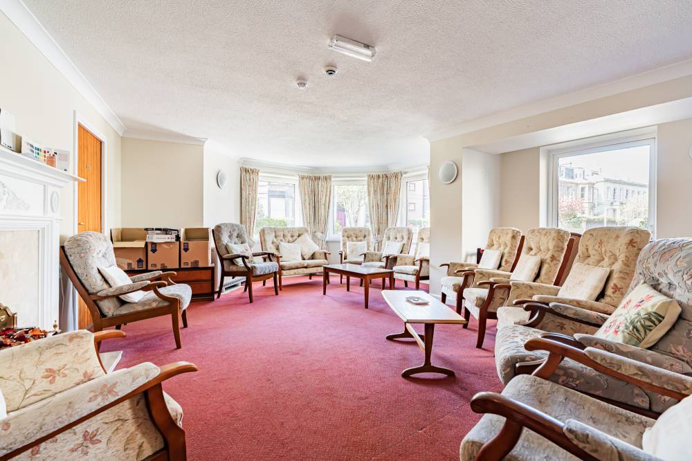 This lovely home enjoys a light and neutral interior with an upgraded kitchen and shower room. Benefiting from electric storage heating and double-glazing, the accommodation comprises: welcoming hallway with a large walk-in storage cupboard. The bright front-facing reception room is beautifully proportioned, with an attractive bay-style window and ample space for both comfortable seating and dining. Positioned just off the main reception room, the stylish kitchen enjoys a front aspect and is fitted with a contemporary range of wall and base units, including a pull-out larder and carousel storage with built-in Induction hob, electric oven and free standing fridge freezer included in the sale. The spacious double bedroom is particularly well-appointed, benefitting from two double built-in wardrobes providing superb storage solutions. Completing the accommodation is a sleek, modern shower room comprising a WC, wash hand basin set within a vanity unit, and a large walk-in double shower enclosure with electric shower. Further benefits include a secure video entry into the communal entrance with lift and stair access to all floors. The development offers an excellent range of shared facilities, including a spacious residents’ lounge, laundry room, and guest suite and in addition, there is a 24-hour careline system (pull cords and wrist alarm). A resident house manager is also on site during weekdays (9am–5pm), ensuring added peace of mind and support.