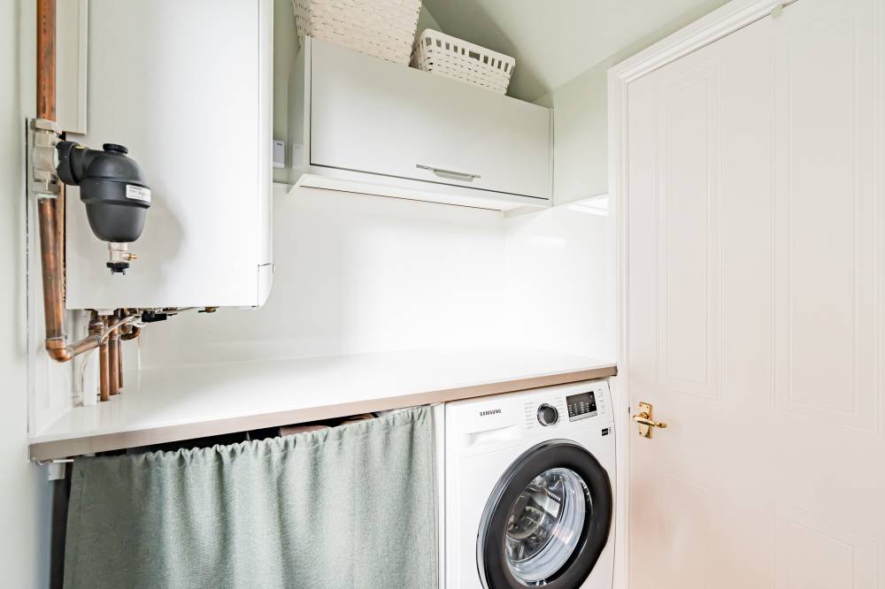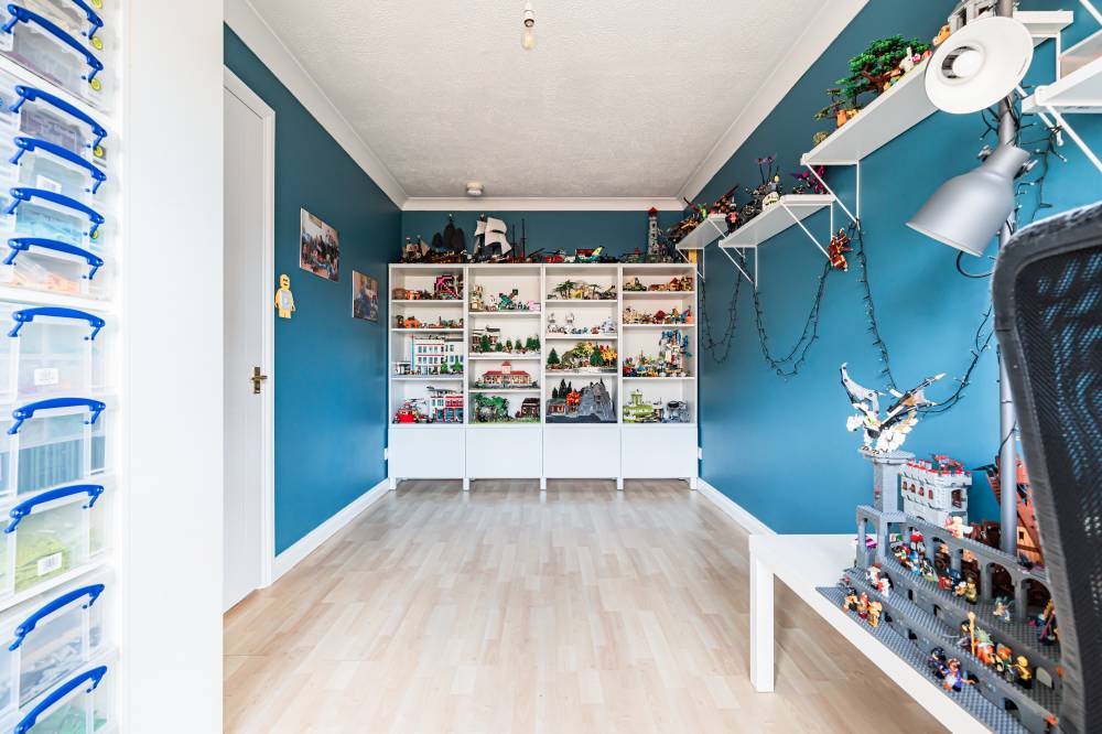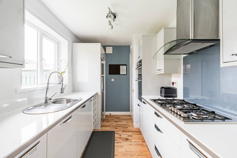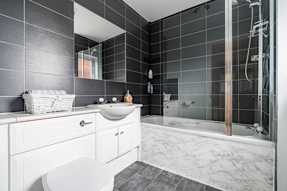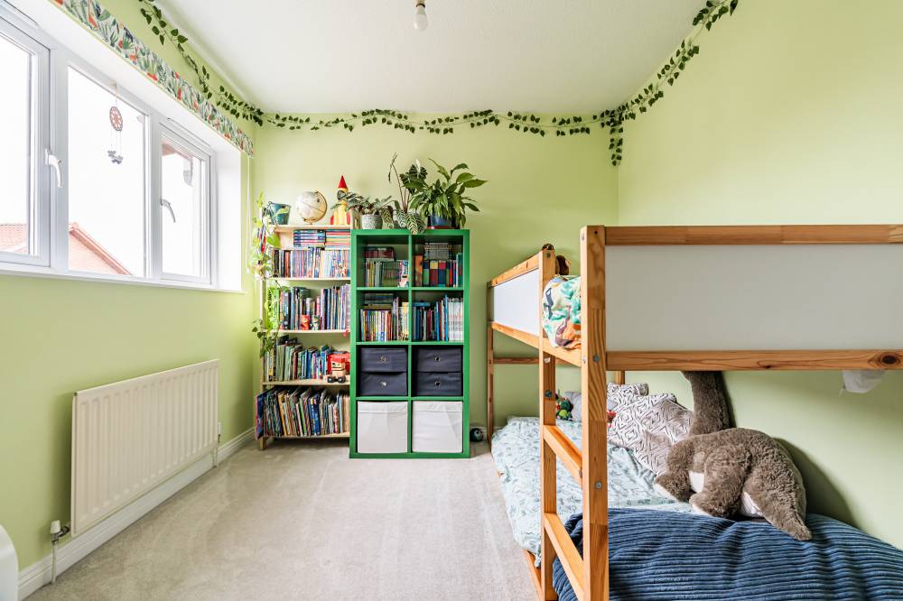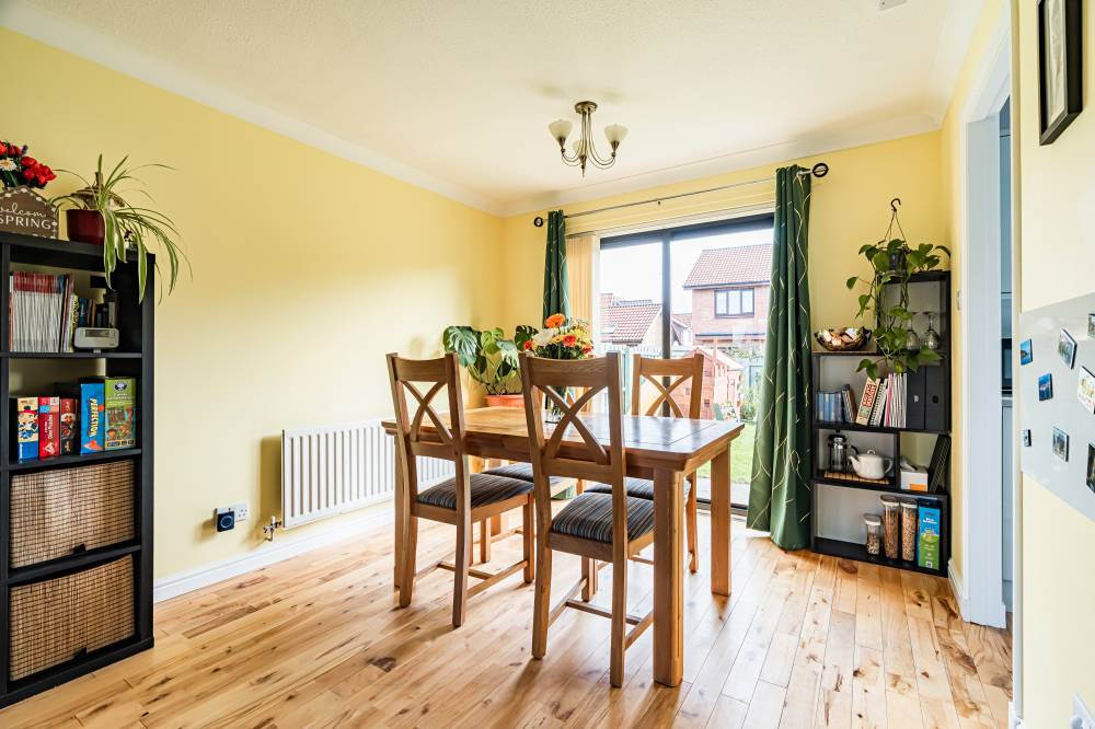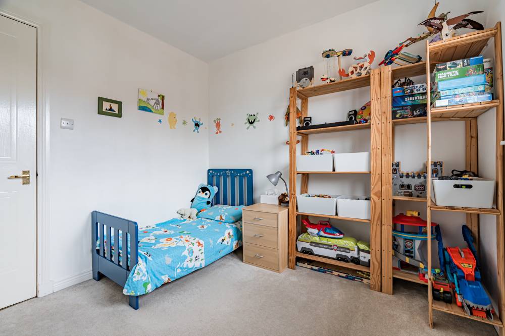 The home opens into a welcoming entrance vestibule, complete with a convenient WC. From here, you are led into a bright and spacious dual-aspect reception room, featuring a window to the front and glazed sliding doors to the rear, allowing for direct access to the garden. This versatile space comfortably accommodates both lounge and dining areas, while an open staircase adds a stylish architectural feature. The modern fitted kitchen is finished with sleek light grey wall and base units, complemented by integrated appliances including a five-burner hob and double oven. The kitchen enjoys a pleasant outlook over the rear garden, creating a calm and inviting space for everyday living. A separate utility room provides additional practicality and includes a side entrance for convenience. On the ground floor, there is a generously sized double bedroom, which could equally serve as a playroom, study, or home office, depending on your needs. Upstairs, the principal bedroom benefits from mirrored built-in wardrobes, soft carpeting, and a contemporary en-suite shower room. Two further well-proportioned double bedrooms provide ample accommodation, while the family bathroom is fitted with a modern white three-piece suite, complete with a shower over the bath and vanity storage. A floored attic offers valuable additional storage space.