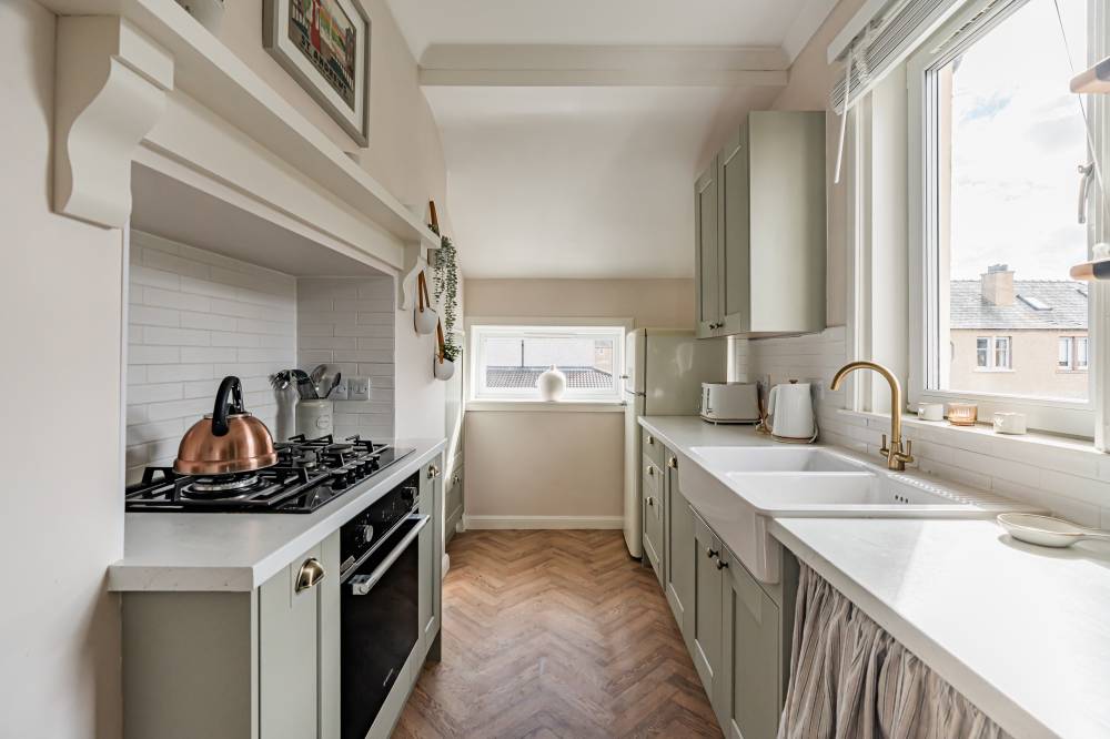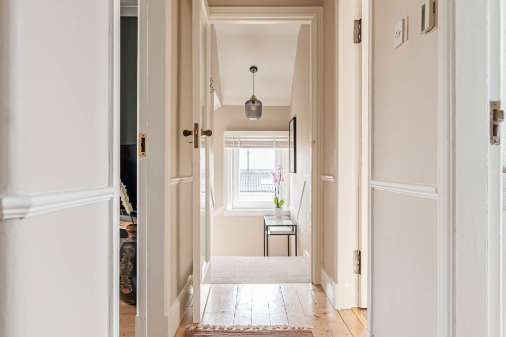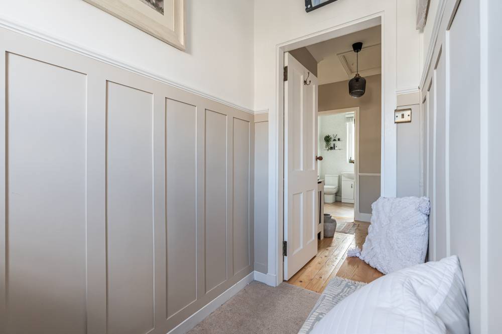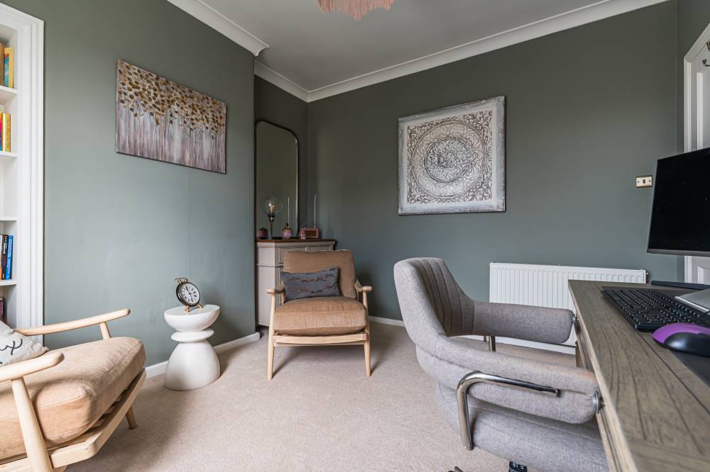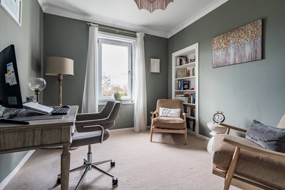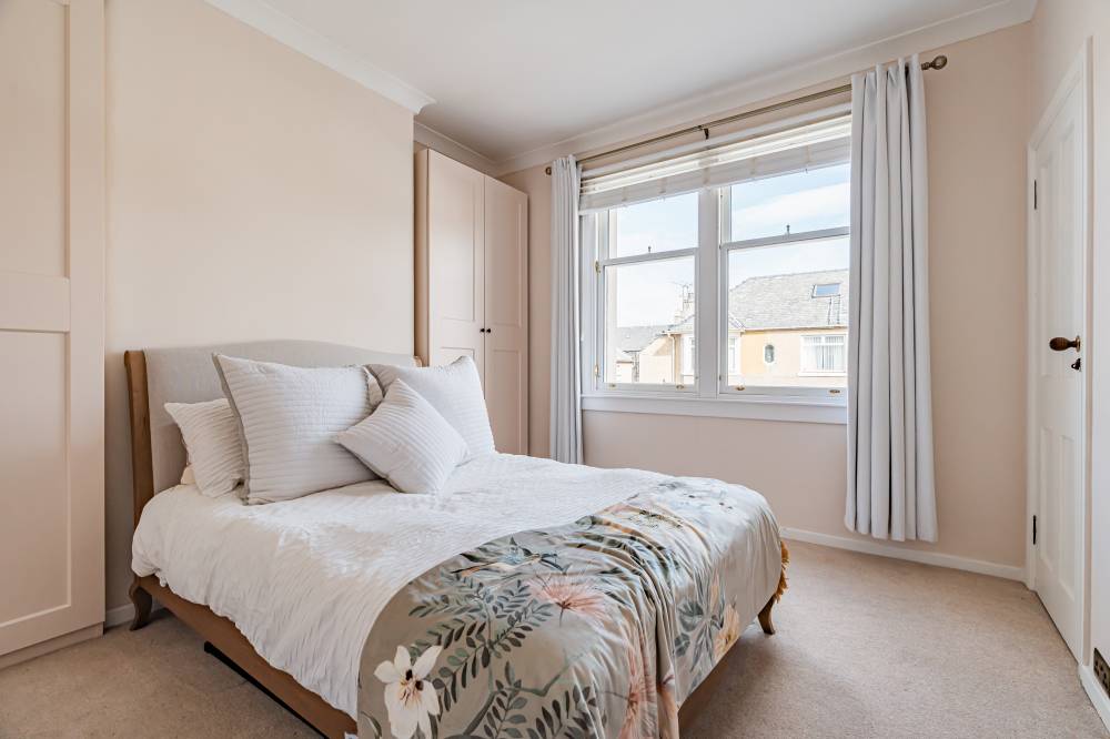 Upgraded to a superb standard, this bright and spacious maindoor upper villa is peacefully located on a quiet residential street. Offered for sale in move-in condition, the accommodation comprises: entrance vestibule with stairs to the upper floor with window to the side and glazed door leading to the hallway. Central hallway with hatch and Ramsay ladder giving access to a large and partially floored attic, which offers scope for conversion to further living accommodation, subject to the usual planning and consents. The bay windowed reception room to the front of the home enjoys an outlook towards Corstorphine Hill and provides the perfect setting for both relaxing and entertaining, there is a walk-in storage cupboard and it is fitted with a log burner for cosy evenings in the cooler months. The bright kitchen has a dual aspect to the side and rear and is fitted with a superb range of shaker style wall and base units with integrated 5-burner gas hob, electric oven and slimline dishwasher with the fridge freezer and washing machine also included in the sale. There are two large double bedrooms, with the principal bedroom to the front having built in wardrobes. An additional box room is currently in use as a dressing room, but could be used as a home office or nursery and it has an octagonal feature window to the front. Finally, the bathroom is fitted with a white suite and dual head over bath shower and has vanity storage and a heated towel rail along with underfloor heating. Further benefits include double glazing throughout (with the exception of the octagonal window) and gas central heating from a combi boiler, located in the attic.