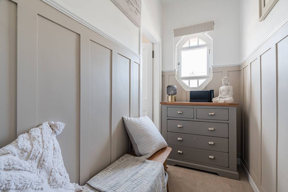 A particular benefit of this home is the detached garage which has up and over door to the front, power and light and a pedestrian door to the garden. There is scope for conversion of the garage to a garden studio or home office, subject to the usual consents. The rear garden has lawn, pebble chipped and decking areas, perfect for al fresco dining during the warmer months. There are fruit trees and well-stocked flower and shrub borders. To the front, a paved driveway provides ample off street parking with a gated pathway leading to the front door.