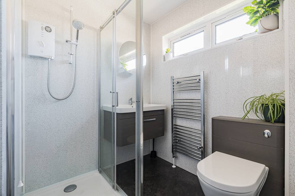 The accommodation briefly comprises; welcoming hallway with understairs storage and convenient WC, generous lounge/dining room with direct access to the garden, stylish kitchen with a range of sleek wall and base units, two double bedrooms – one with a built in wardrobe, and a contemporary shower room with a heated towel rail. The property further benefits from gas central heating and double glazing.