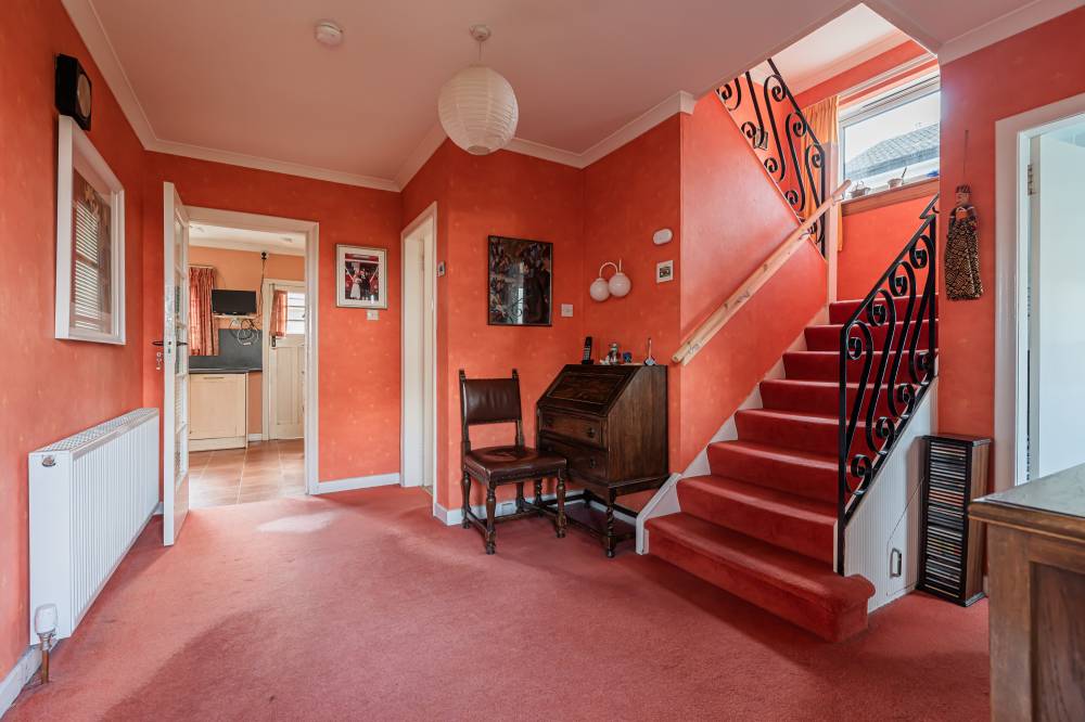 Quietly positioned within the highly regarded Bonaly district of the city, the property is conveniently situated for access to local amenities, super commuting links and reputable schooling with the wonderful Pentland Hills Regional Park nearby. Whilst the property would now benefit from modernisation and upgrading, it offers excellent potential and long-term investment and would ideally suit families or professionals alike keen to create a bespoke home in a fantastic sought-after location. The generously proportioned accommodation comprises; entrance porch, welcoming reception hallway with storage facilities with split level carpeted staircase leading to the upper floor. There is a lovely and spacious dual aspect reception room, a rear facing diningroom with French doors leading to the conservatory, providing a pleasant open aspect over the rear garden. The kitchen, which can be accessed from the diningroom and hallway, is fitted with ample wall and base units with built-in hob, separate eye level oven/grill with integrated appliances. There is a rear porch/utility located off the kitchen with access to the garden. A good-sized rear facing double bedroom is also located on the ground floor with extensive storage including fitted wardrobes. Completing the downstairs accommodation is a modern shower room with three piece white suite with main shower. Upstairs leads to the principal double bedroom fitted with built-in wardrobes, a further good sized double bedroom, a useful boxroom/study with window and the family bathroom with three piece suite with electric shower over bath. Further benefits include an insulated attic, double glazing and of particular note is the fully upgraded gas central heating system with combi boiler, with new pipe work and radiators.