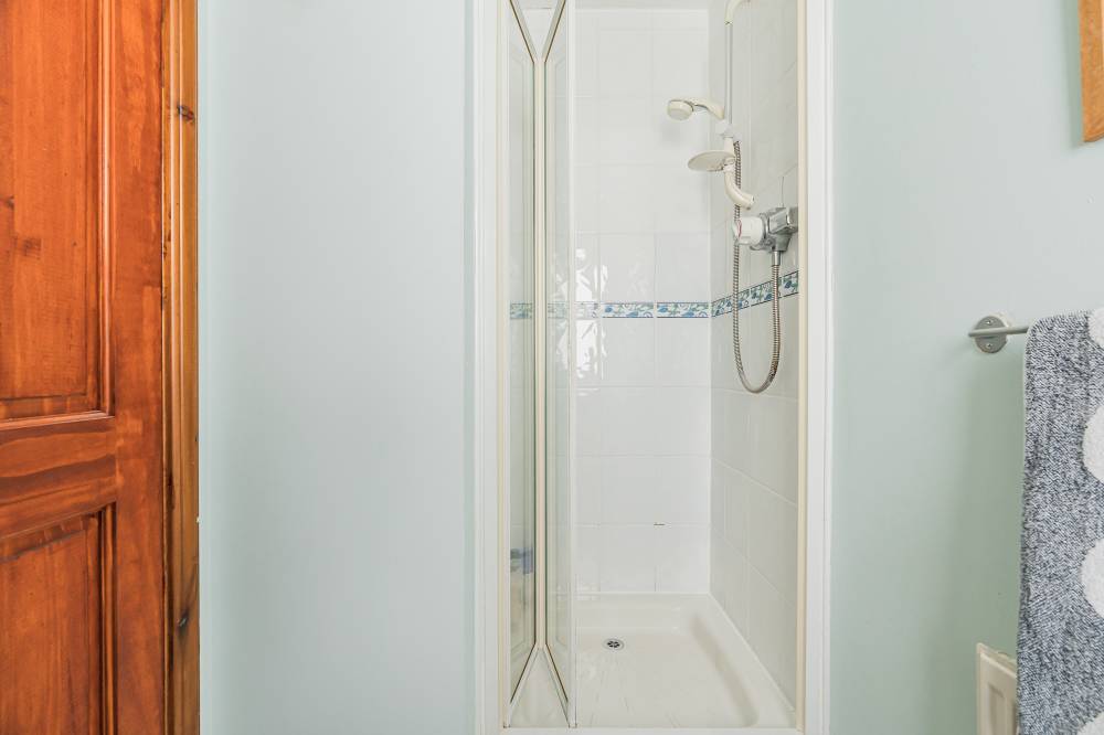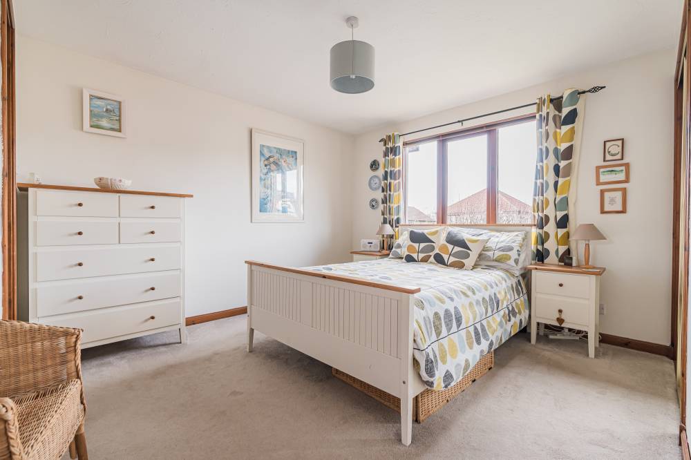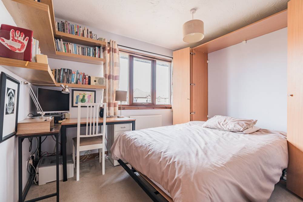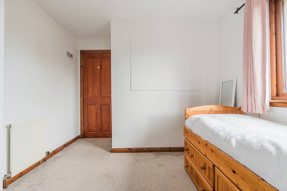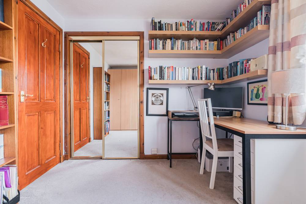 Upstairs, the landing offers access to a partially floored attic via a Ramsay ladder, along with a useful linen cupboard. The principal bedroom is a generous front-facing double with an integrated wardrobe. The en suite is partially tiled and fitted with a shower cubicle. Bedroom two is a front-facing double, currently used as a home office, and benefits from an integrated wardrobe with sliding mirrored doors. Bedroom three is another double with a rear aspect, and both rooms offer ample space for freestanding furniture and flexible arrangements. Bedroom four is a single room with a quiet rear outlook, ideal for use as a nursery, study, or additional bedroom. The family bathroom is partially tiled and fitted with a shower over bath.